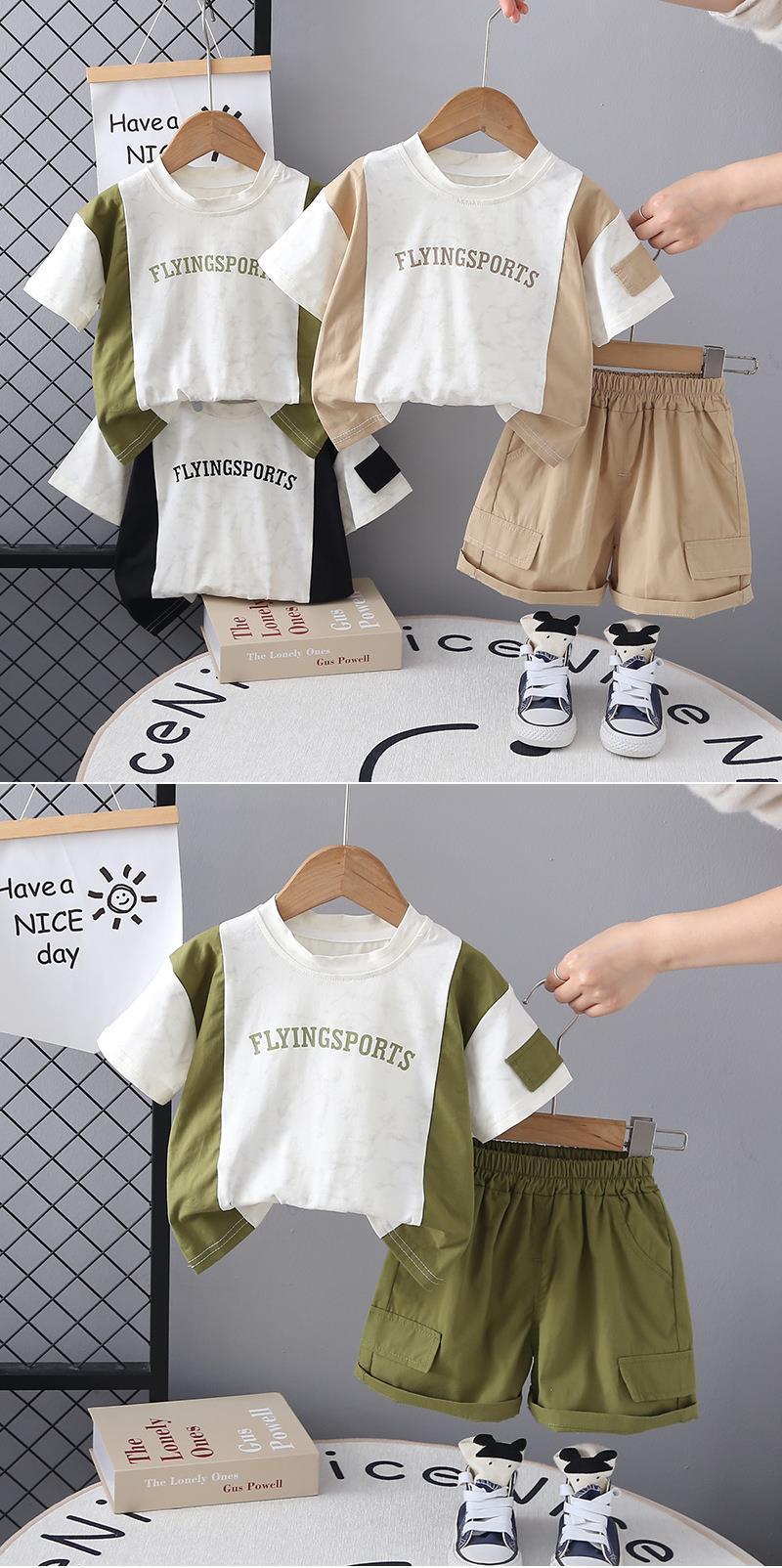 국경 간 어린이 여름 의류 도매 조수 아동복 한국 티셔츠 컬러 매칭 반바지 2 남학생과 여학생을위한 세트 옷스토어 가기
