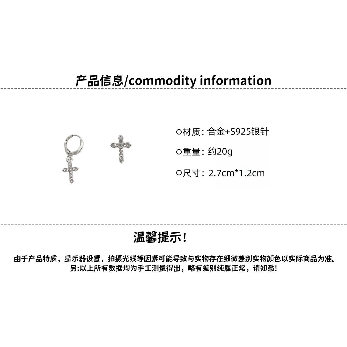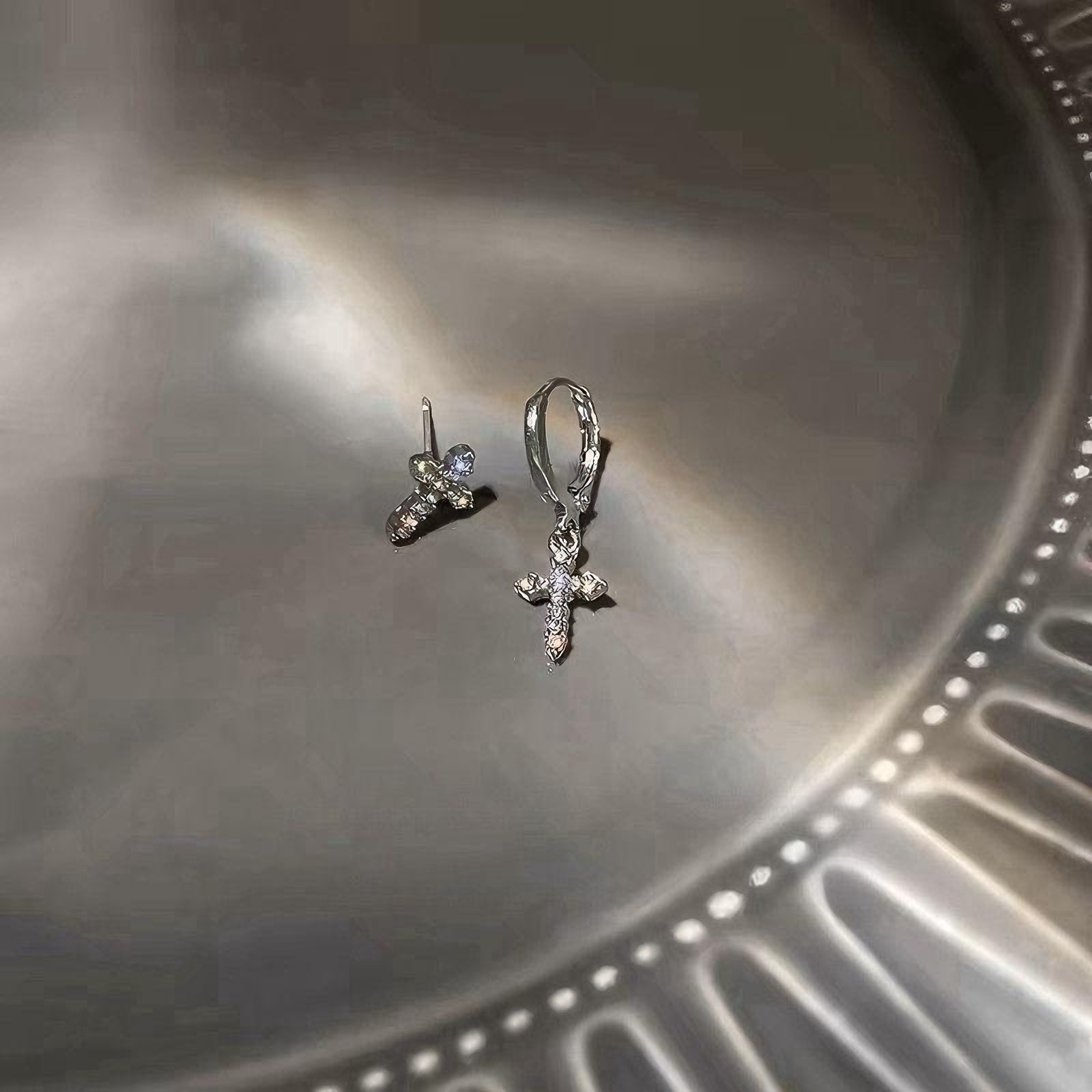 S925 실버 바늘 비대칭 다이아몬드 크로스 귀걸이 일본과 한국 스타일 인터넷 연예인 우아한 귀 버클 콜드 스타일 패션 귀걸이