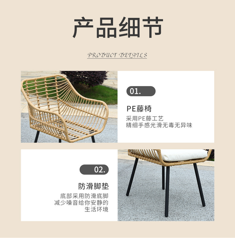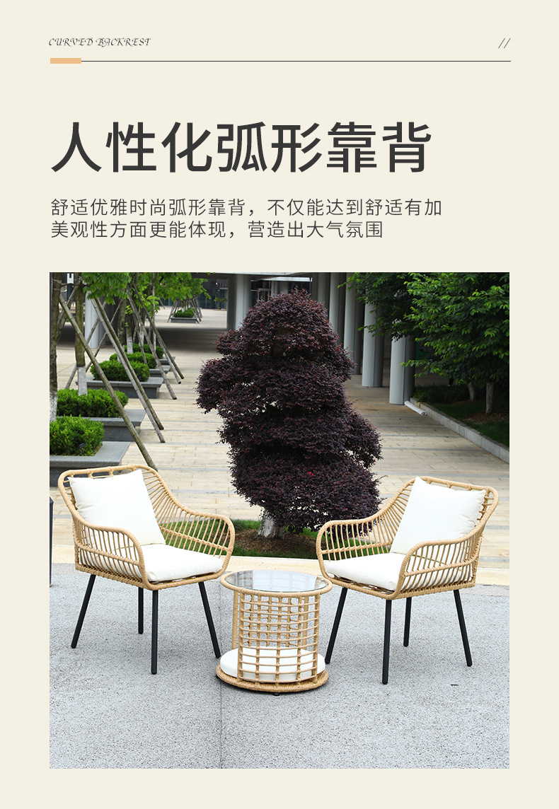 테라스용 등나무 테이블과 의자 3종 세트, 애프터눈 티 가구, 심플한 커피 테이블과 의자 조합, 등나무 발코니 야외 가구스토어 가기