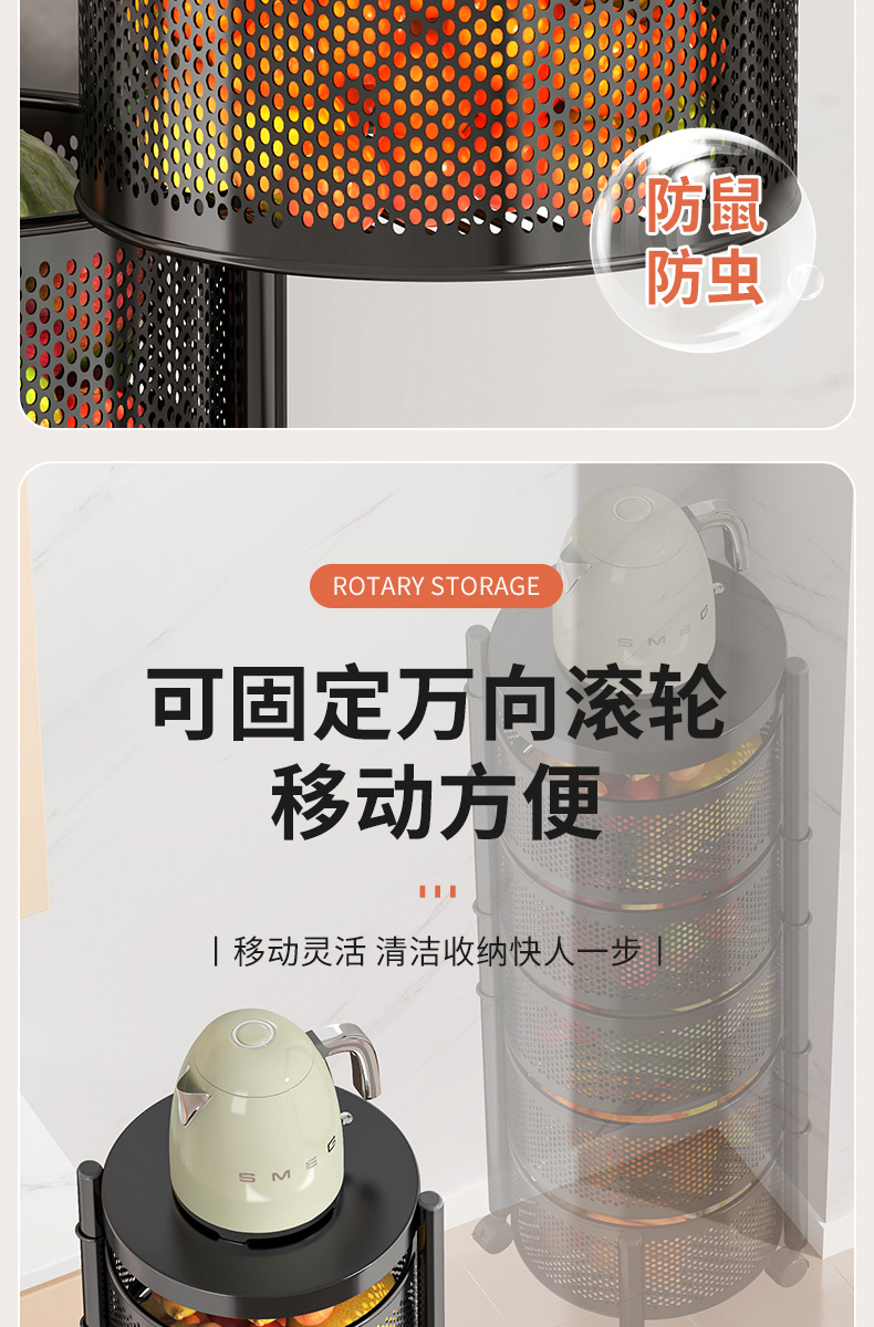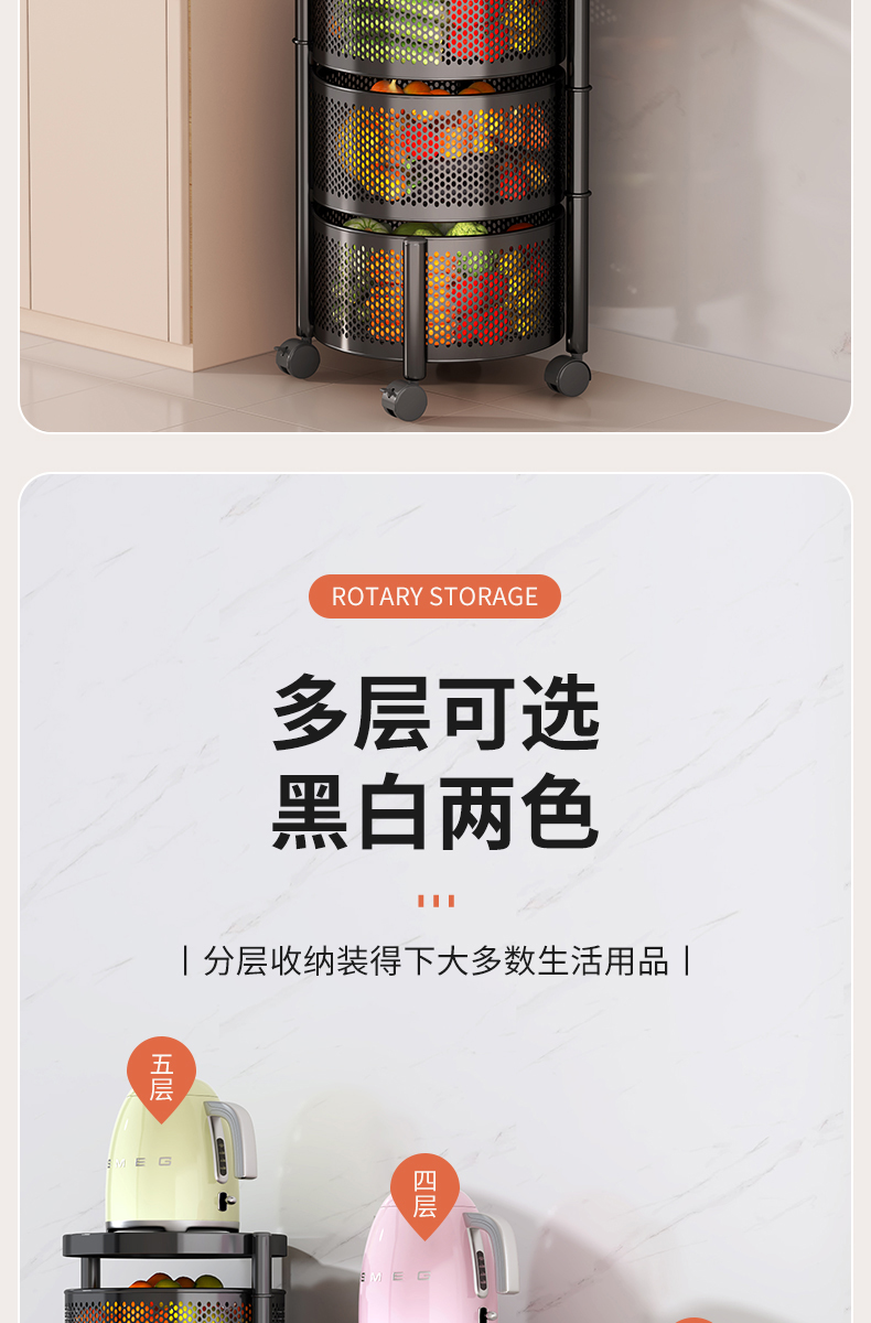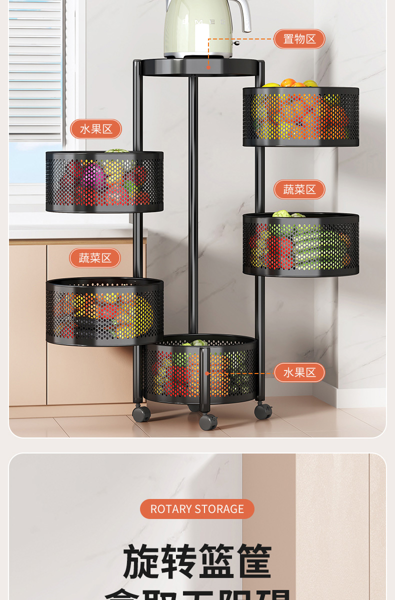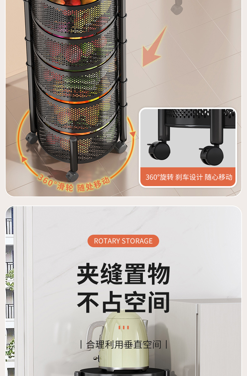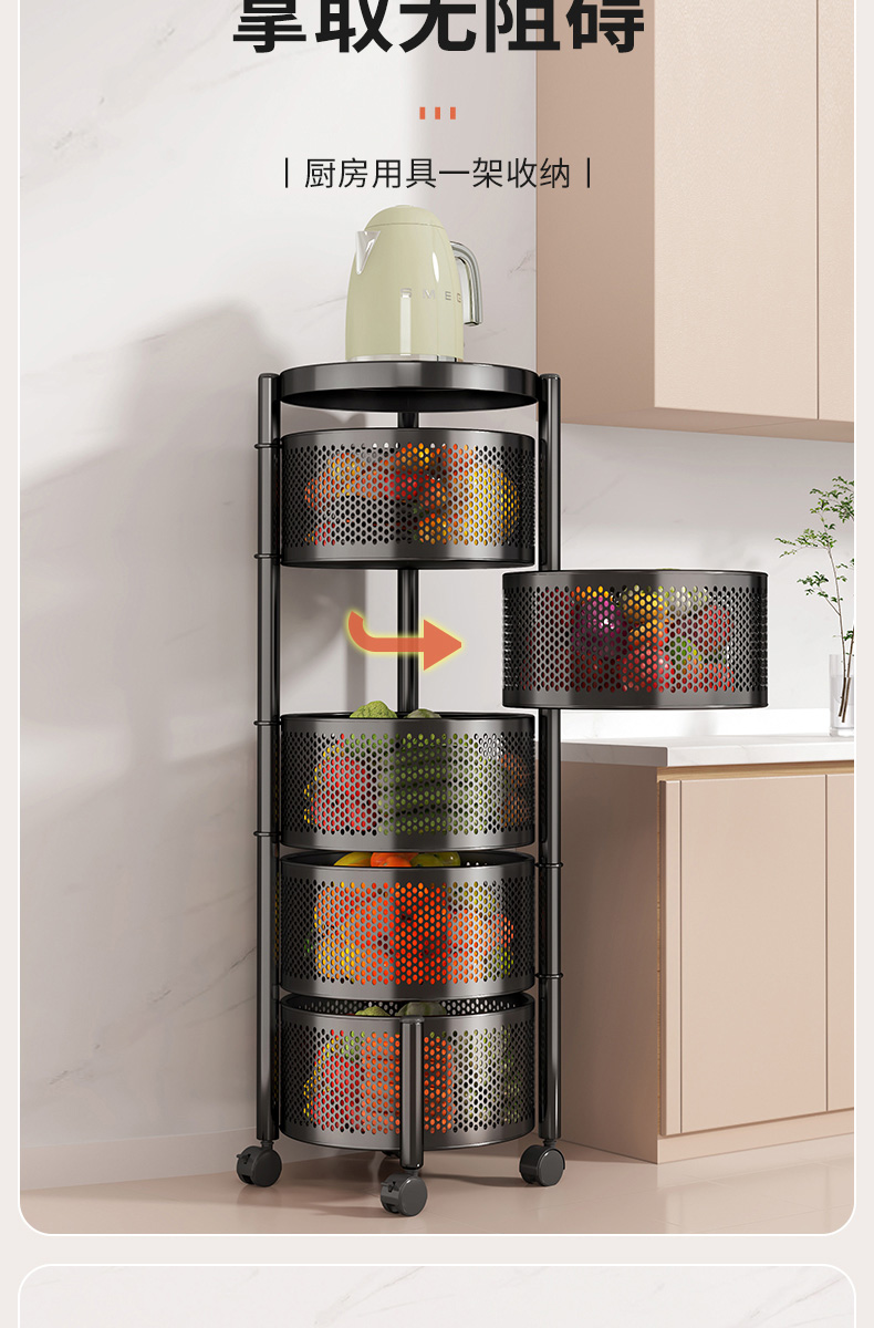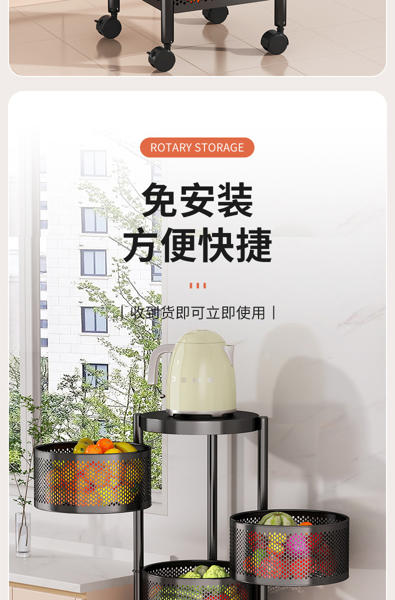 주방 회전 다기능 스토리지 랙 바닥 다층 카트 간식 야채 바구니 스토리지 랙 거실 모바일