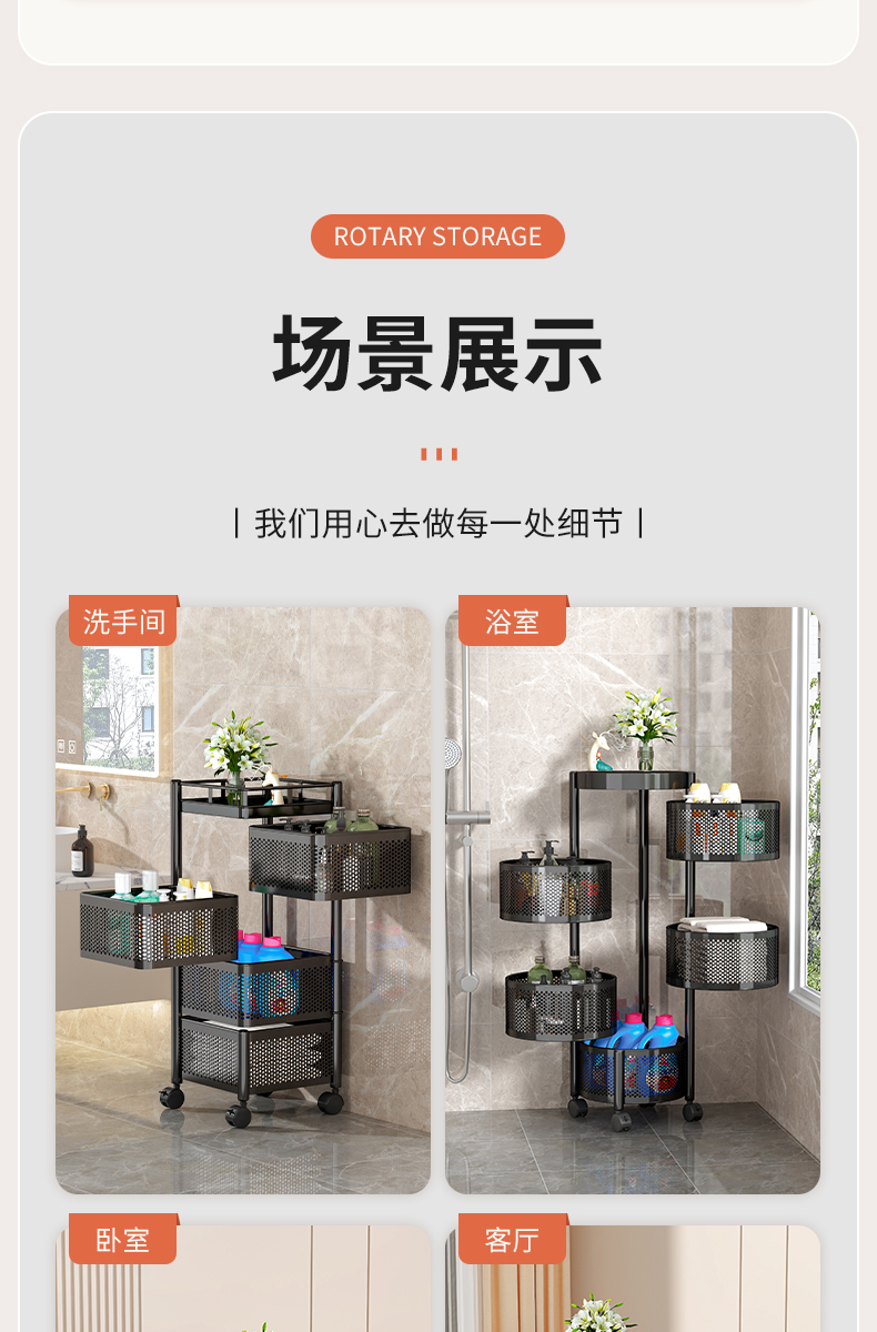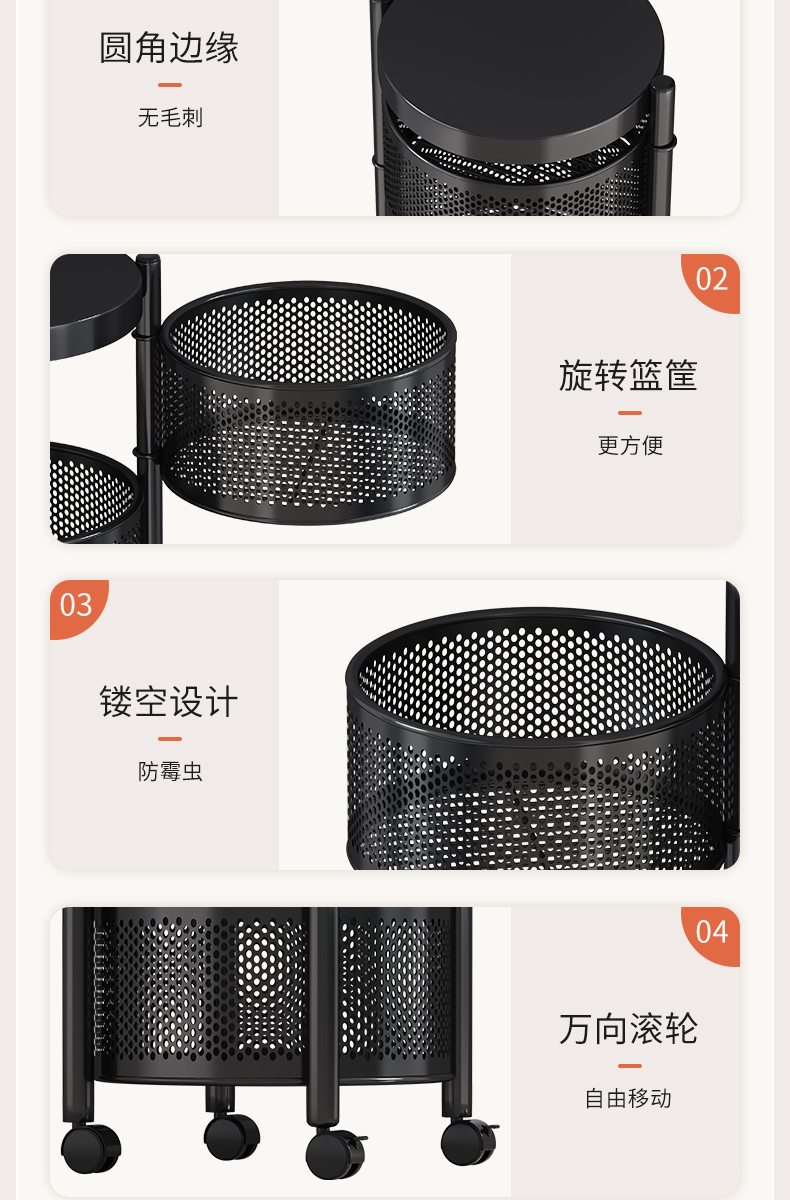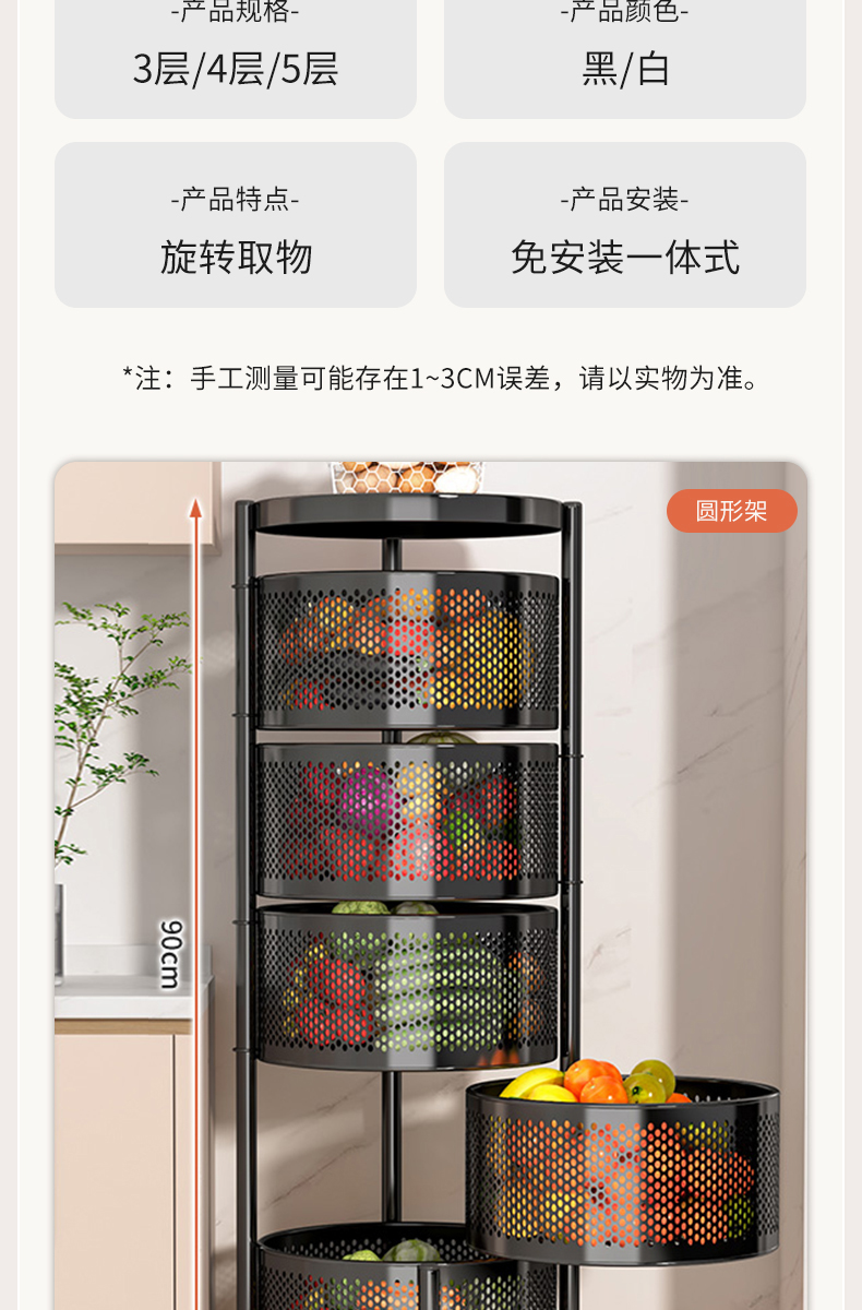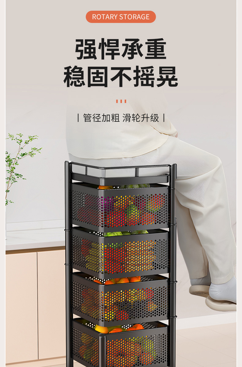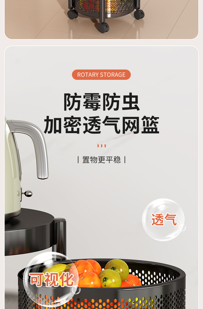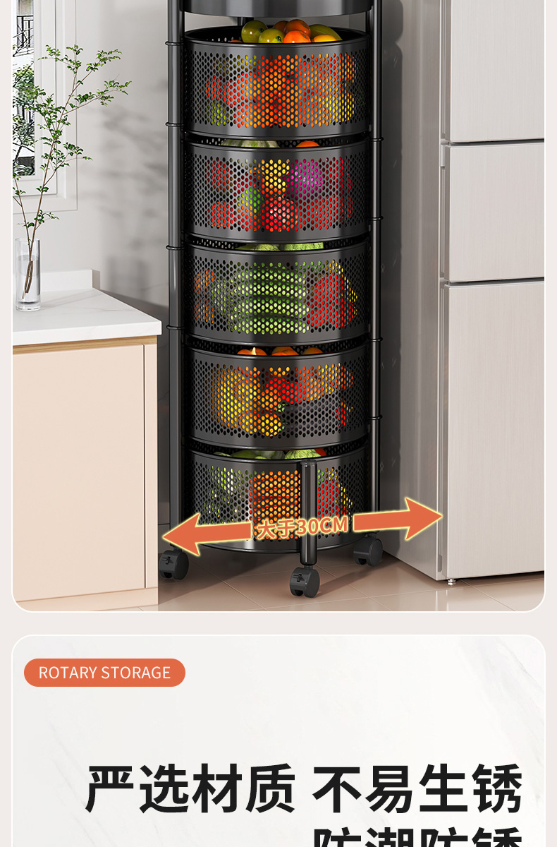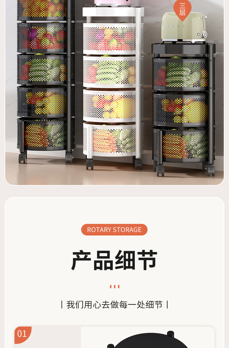 주방 회전 다기능 스토리지 랙 바닥 다층 카트 간식 야채 바구니 스토리지 랙 거실 모바일