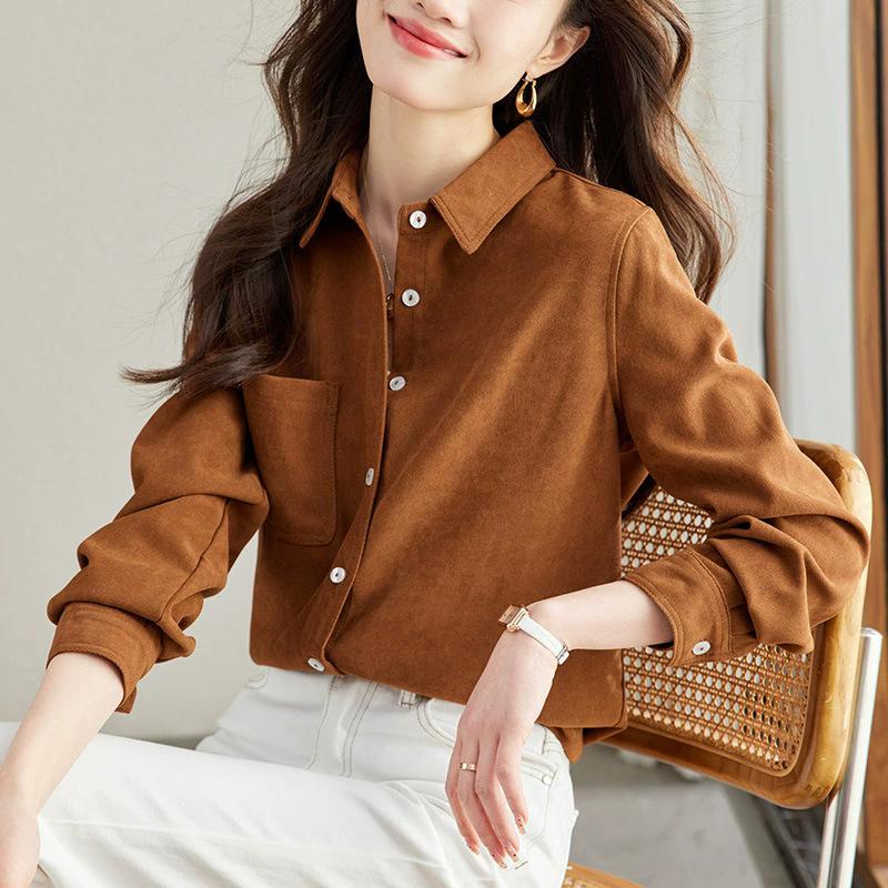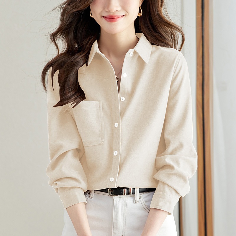 2025 봄 새로운 짧은 코트 여성 통근 세련된 포켓 옷깃 셔츠 여성용 싱글 포켓 샌딩 셔츠