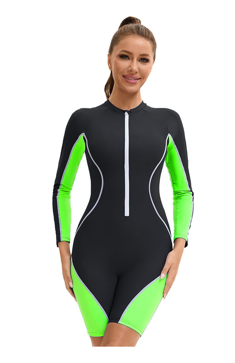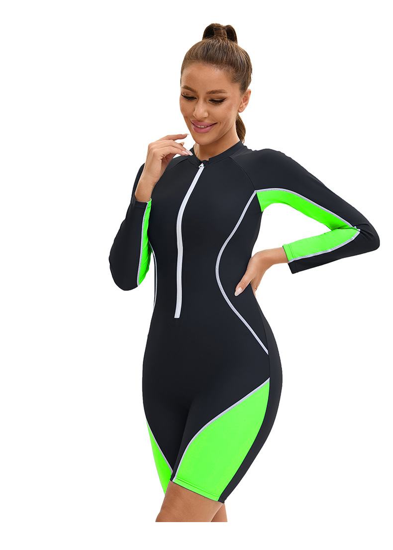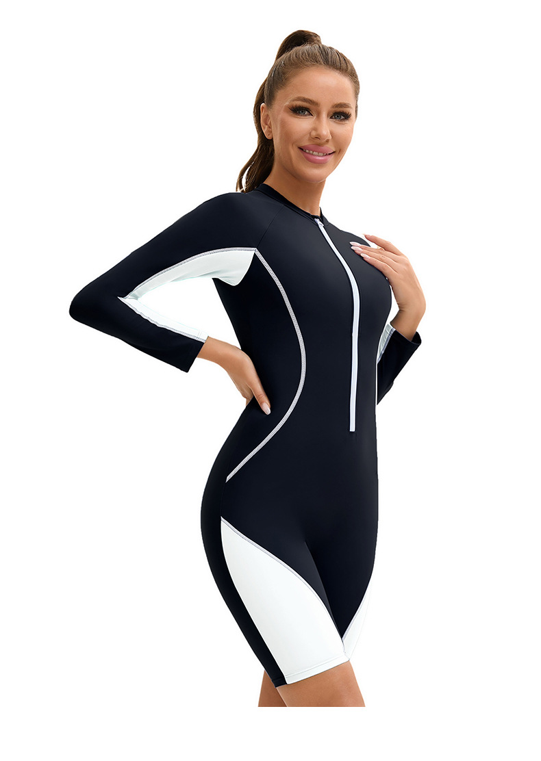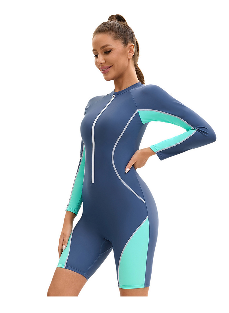 아마존 긴팔 반길이 바지 여성용 수영복 국경 컬러 블록 보수적 지퍼 다이빙 세트 플랫 앵글 수영복스토어 가기
