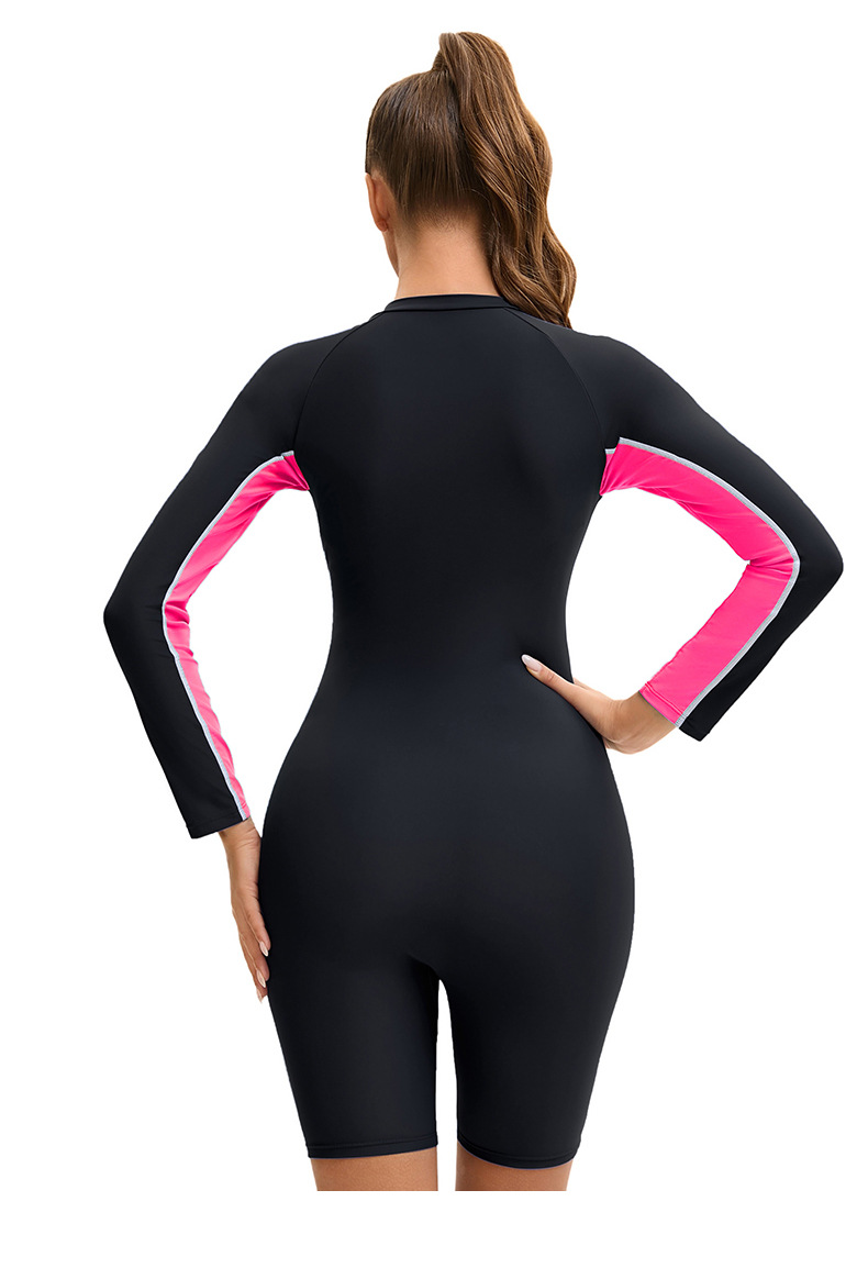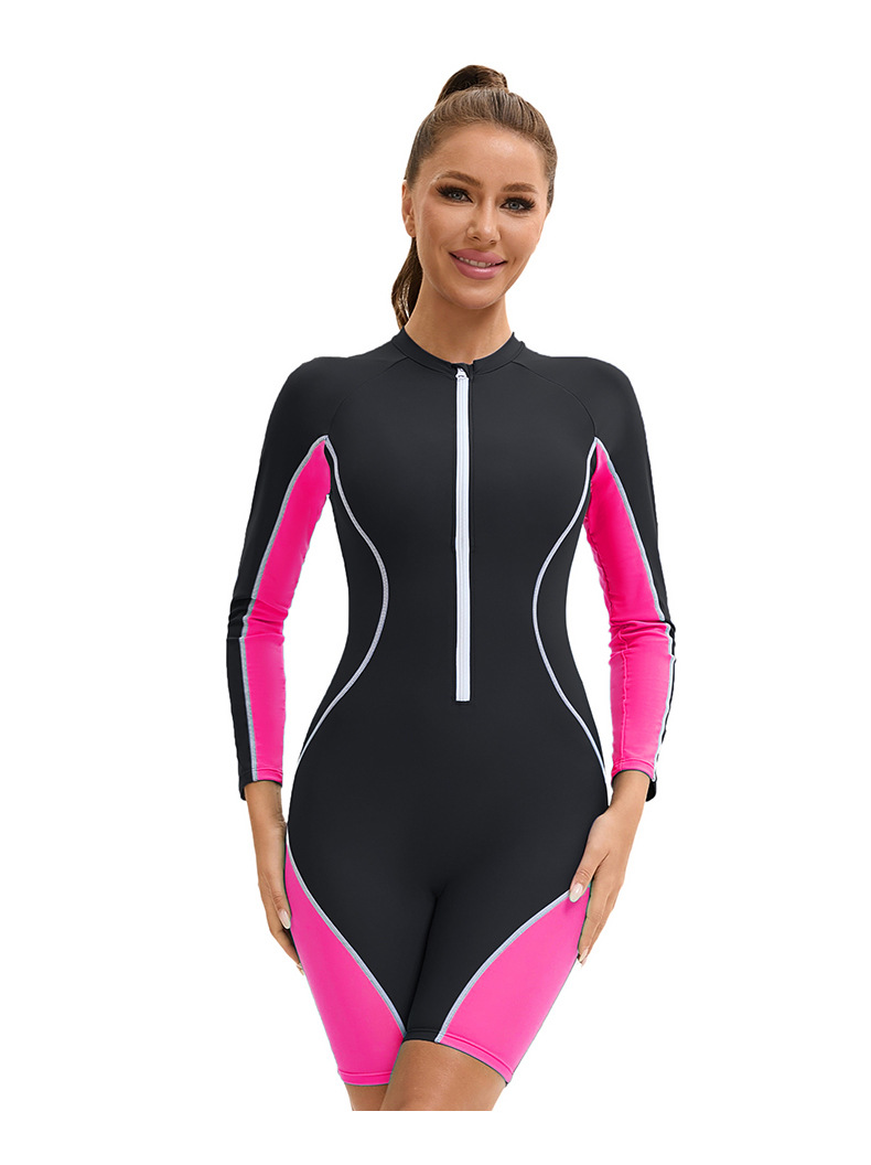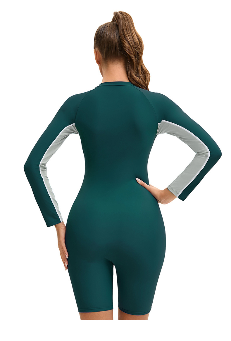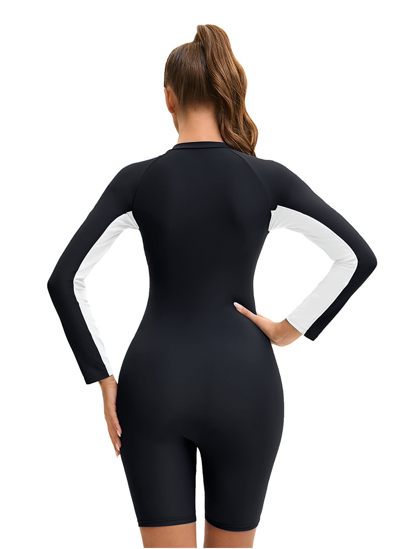 아마존 긴팔 반길이 바지 여성용 수영복 국경 컬러 블록 보수적 지퍼 다이빙 세트 플랫 앵글 수영복스토어 가기