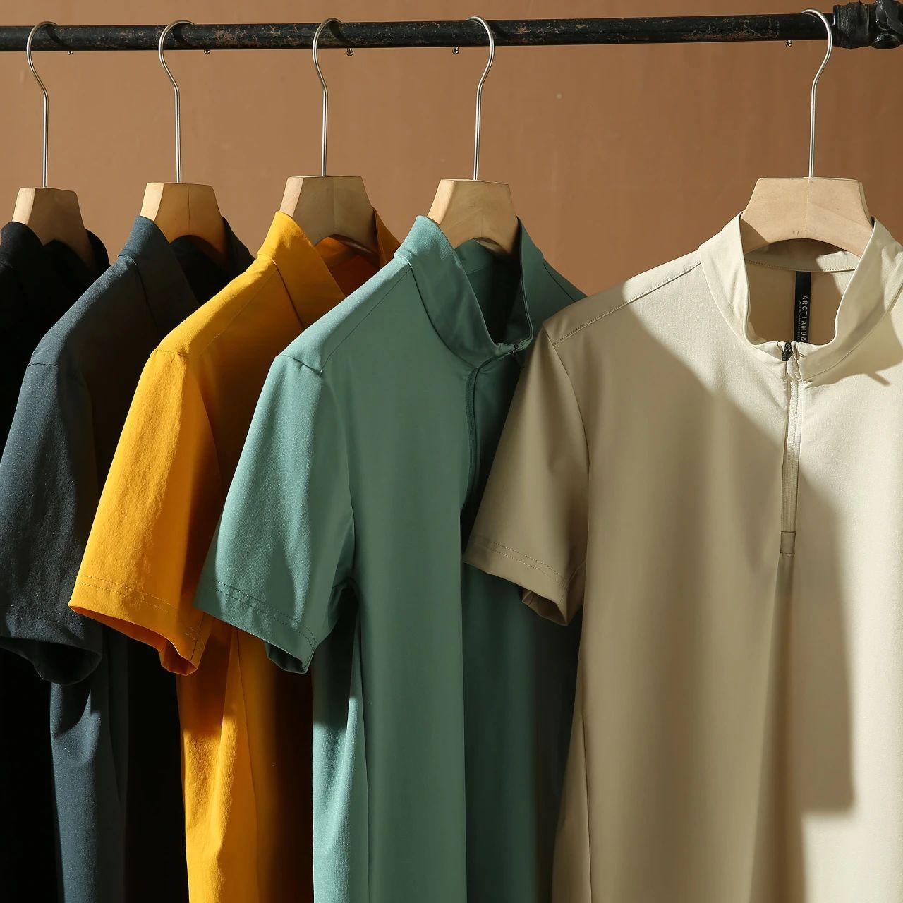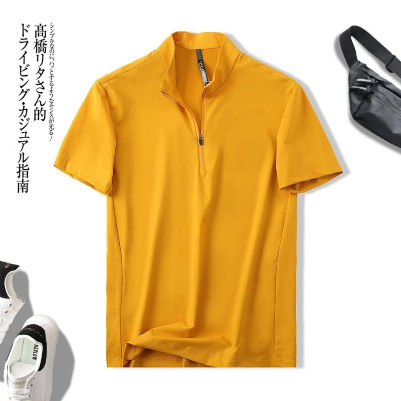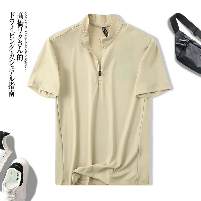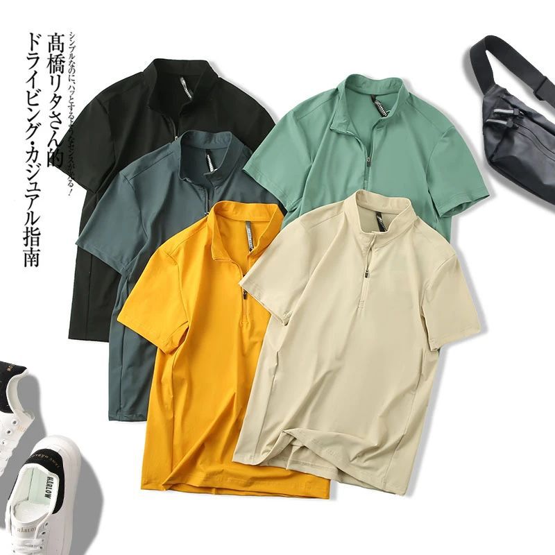 야외 기능성 바람! 가벼운 빠른 건식 통기성! 여름 남자 하프 지프 칼라 스포츠 스트레치 짧은 소매 티셔츠
