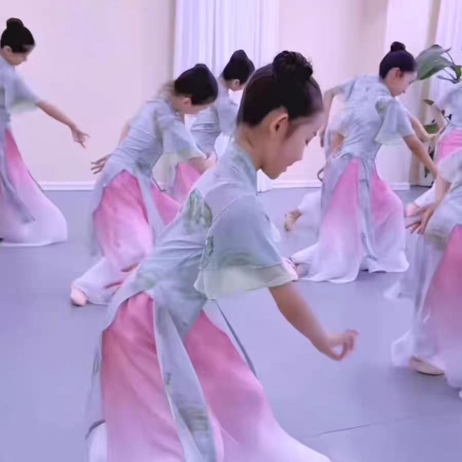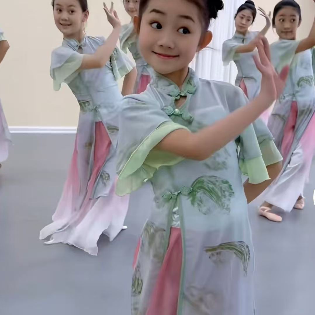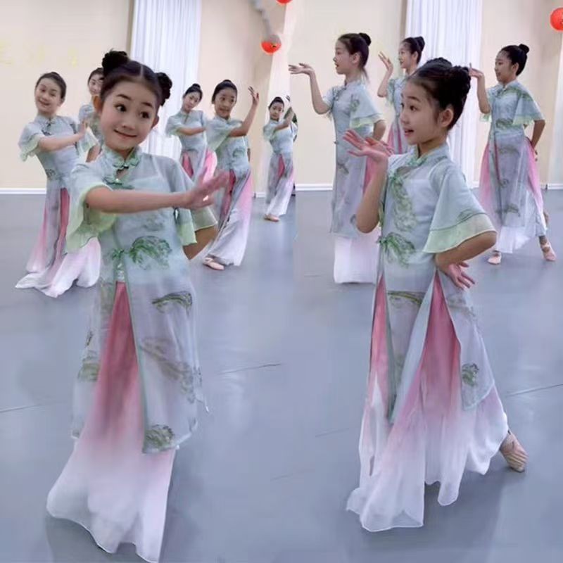 어린이 클래식 댄스 의상 소녀의 우아한 베일 골동품 팬 댄스 의상 어린이 중국 댄스 연습 의상스토어 가기