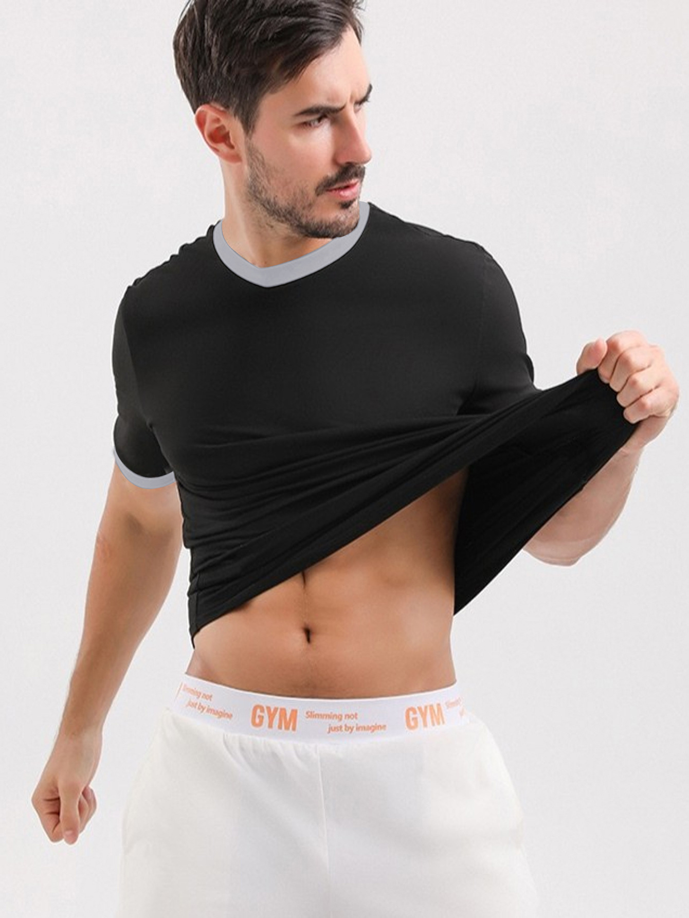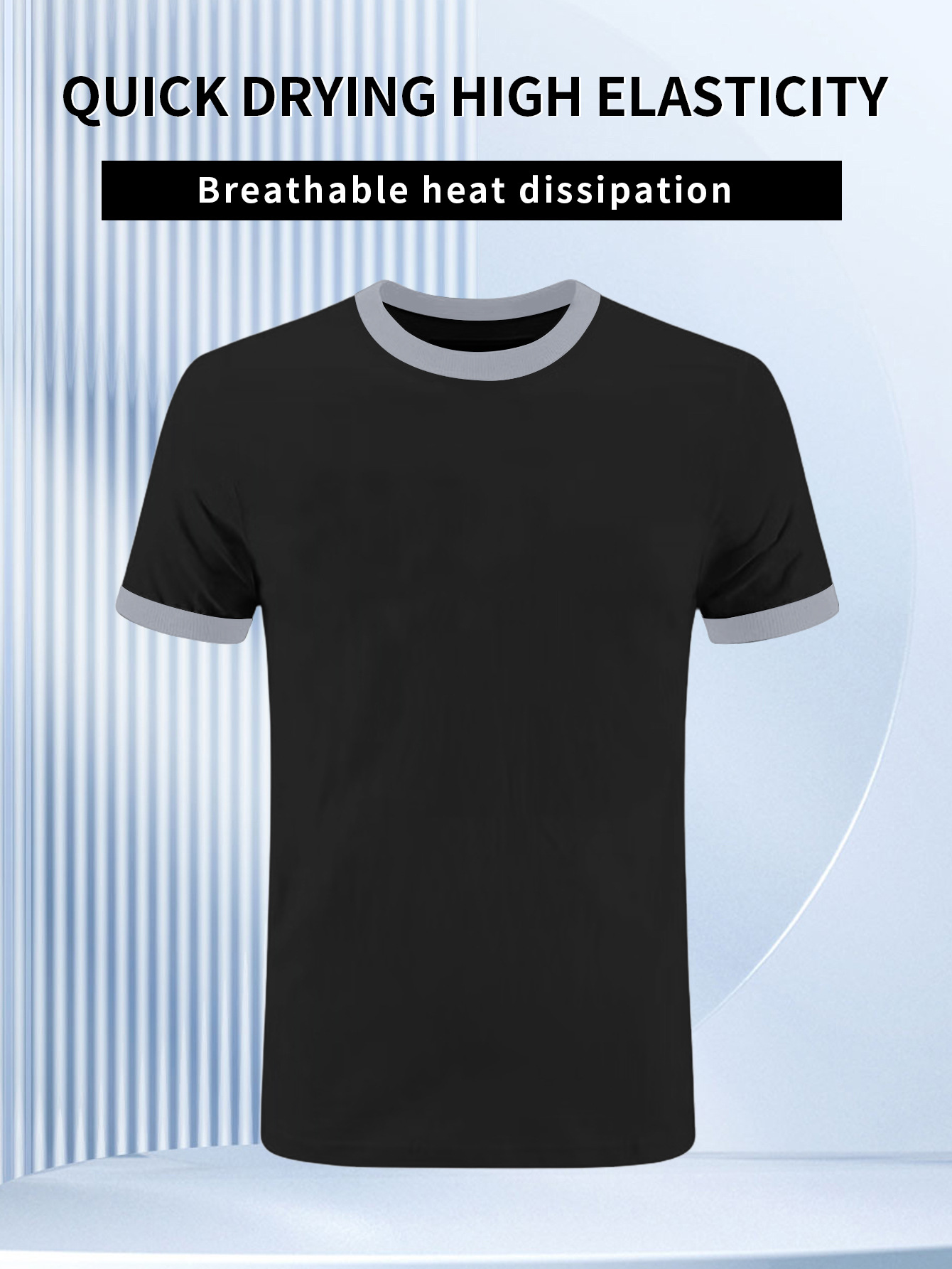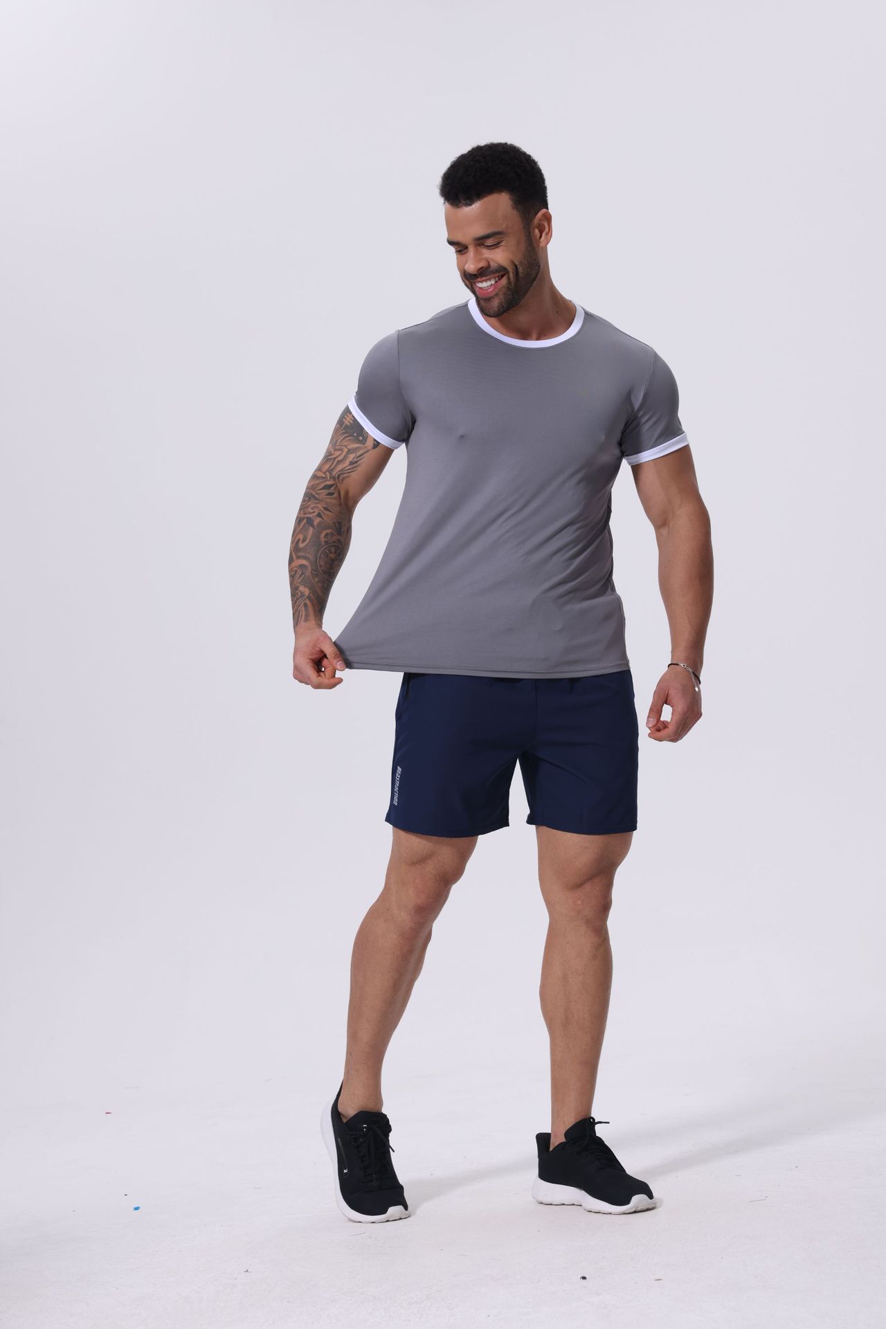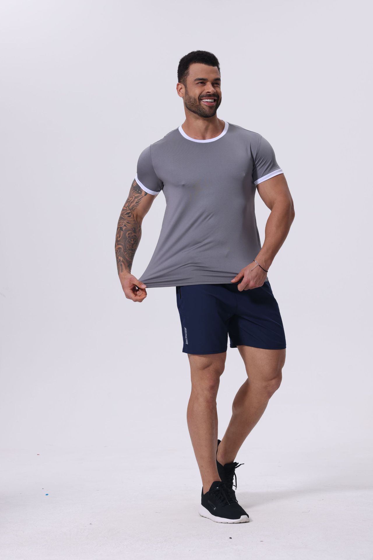 국경 간 여름 남성 스포츠 티셔츠 빠른 건조 직물 높은 탄성 스트레치 달리기 스포츠 체육관 패션 라운드 넥 짧은 소매스토어 가기