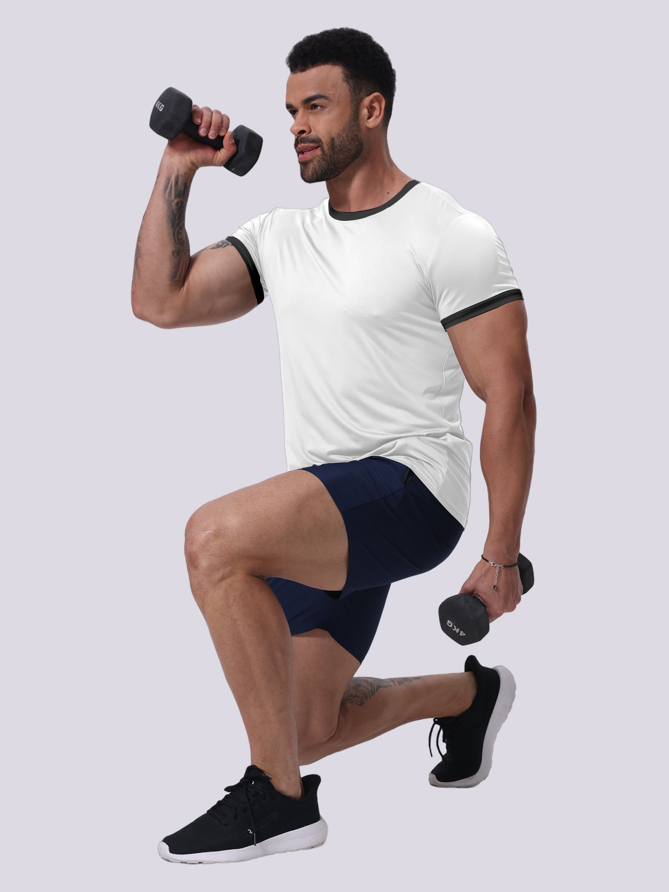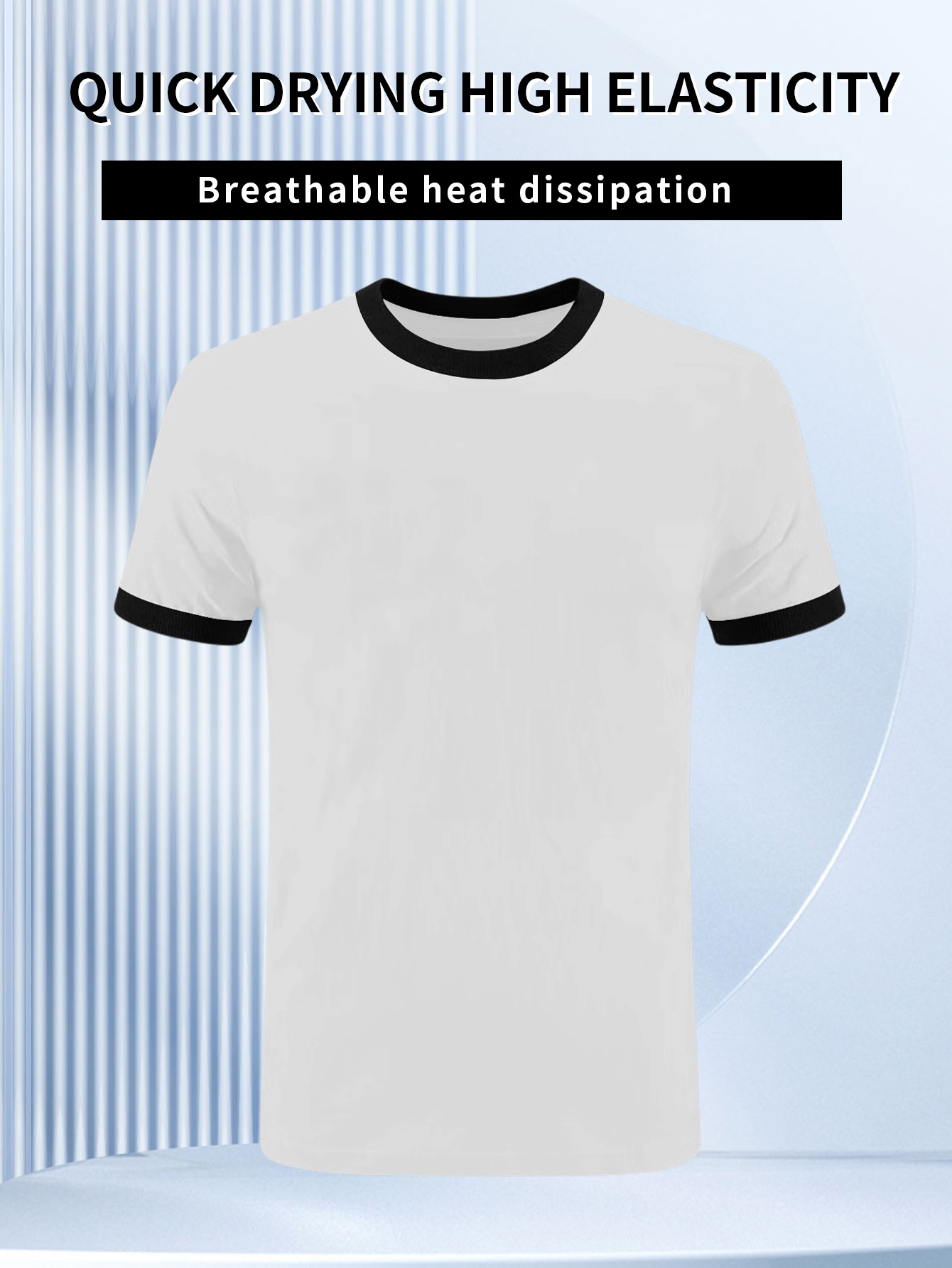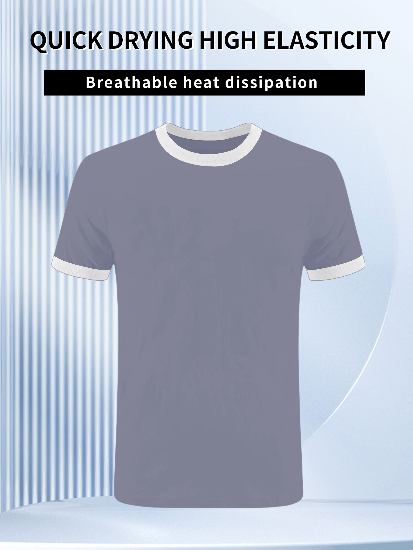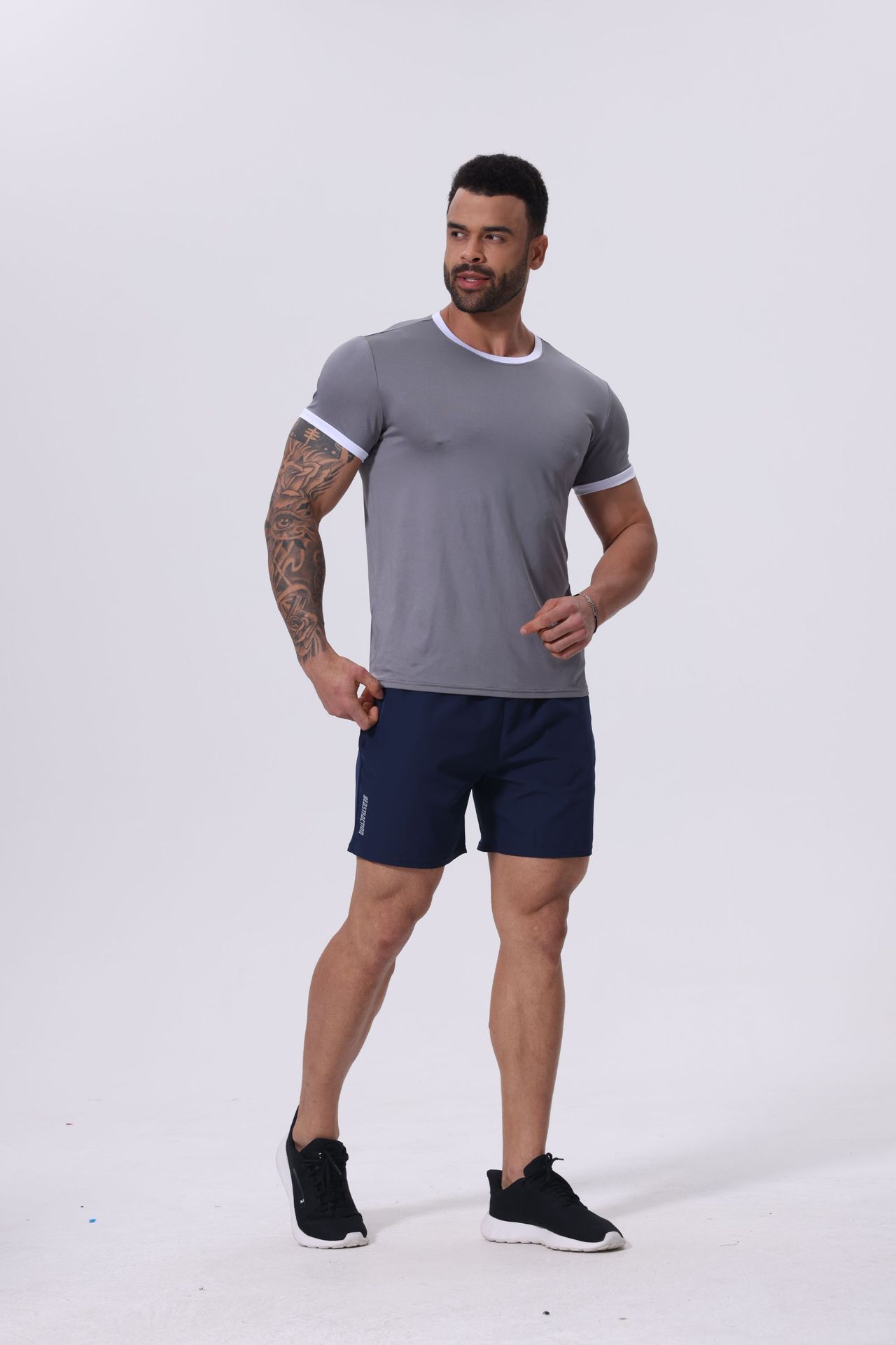 국경 간 여름 남성 스포츠 티셔츠 빠른 건조 직물 높은 탄성 스트레치 달리기 스포츠 체육관 패션 라운드 넥 짧은 소매