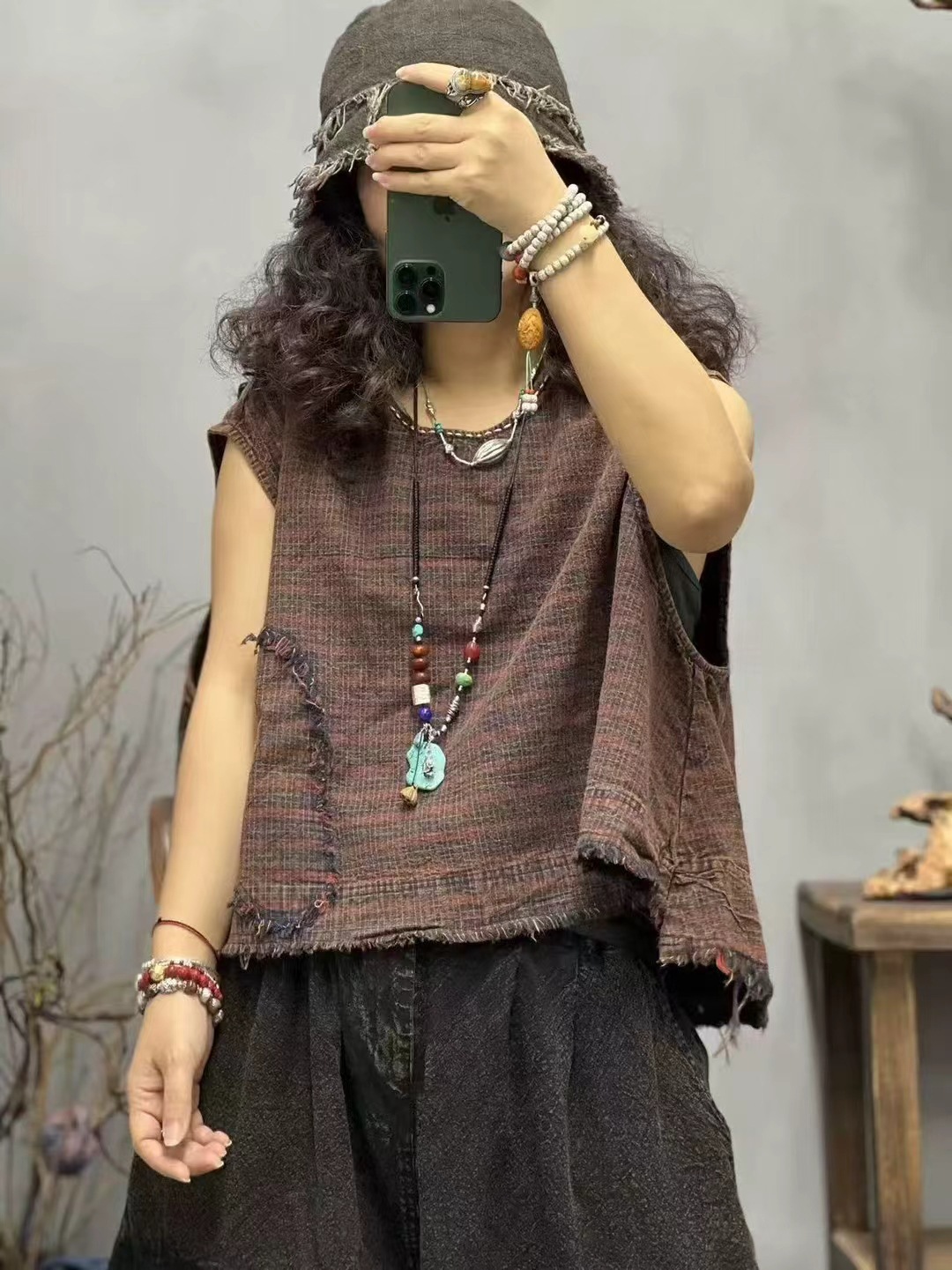 빈티지 올드 천 조끼 여성 포켓 독특한 짧은 여름 새로운 느슨한 올매치 캐주얼 패션 슬림 핏 웨어 7255스토어 가기