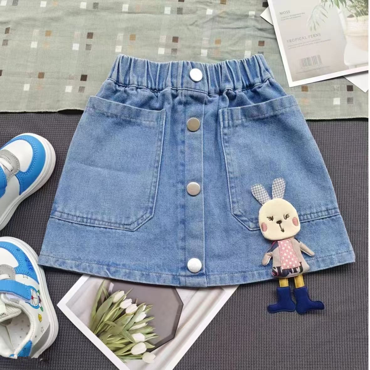 여자 여름 데님 짧은 치마 아기의 서양식 어린이 성격 유행 한국 스타일 3 차원 만화 유행 한 단계 치마스토어 가기