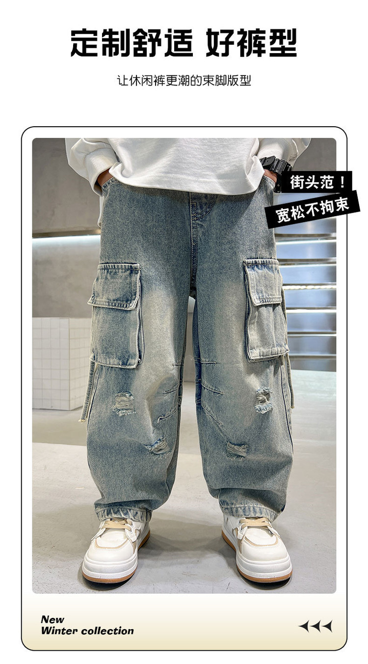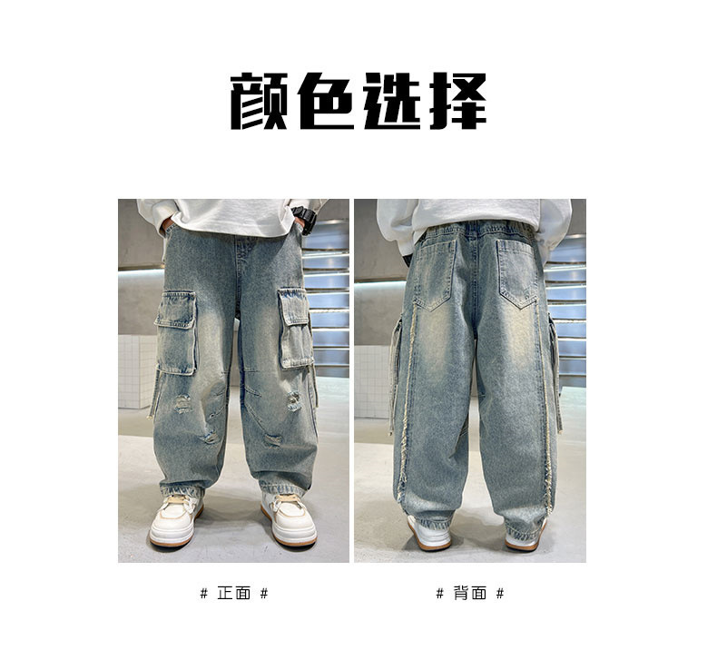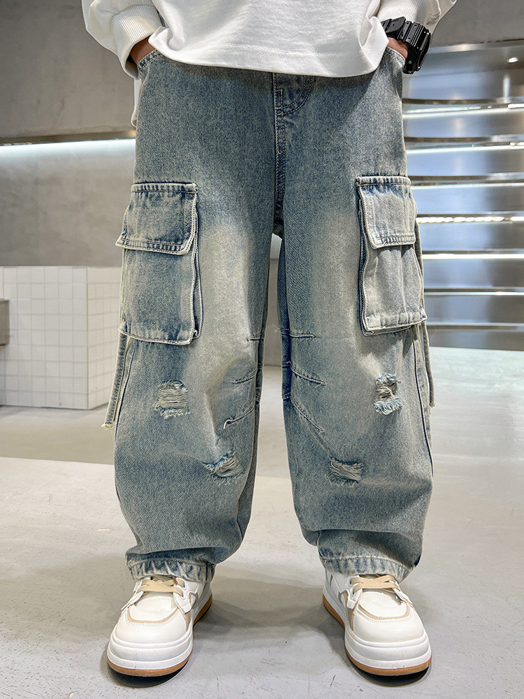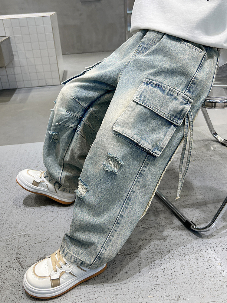 대외 무역 소년 스트레이트 레그 청바지 2025 새로운 도착 소년 및 소년 힙합 팬츠 한국 스타일 봄과 가을 바지