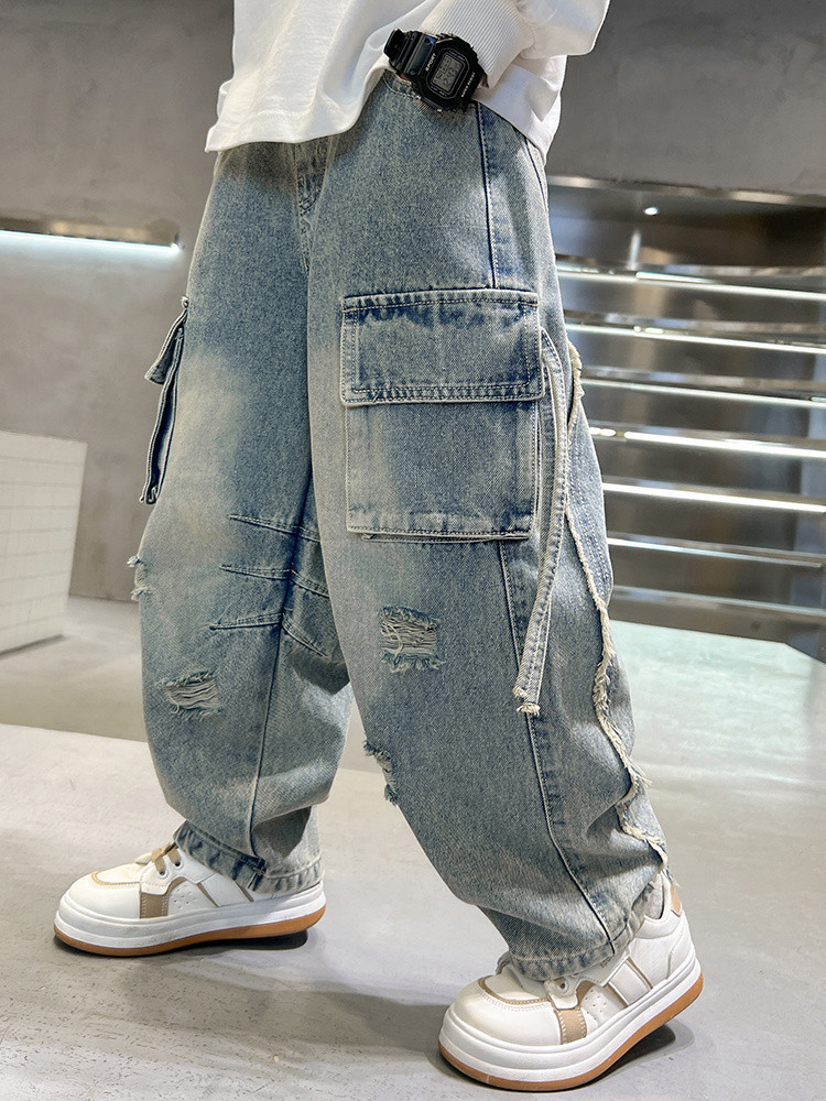 대외 무역 소년 스트레이트 레그 청바지 2025 새로운 도착 소년 및 소년 힙합 팬츠 한국 스타일 봄과 가을 바지스토어 가기