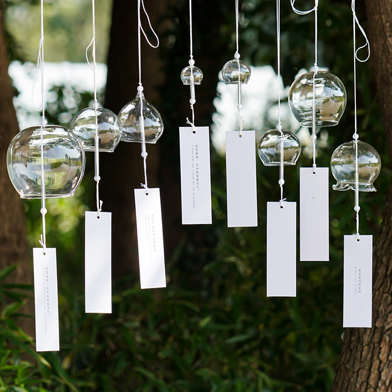 투명 유리 바람 차임 사용자 정의 흰색 판지 흰색 라인 흰색 구슬 명승지 친구 급우 결혼식 복장 보내기스토어 가기