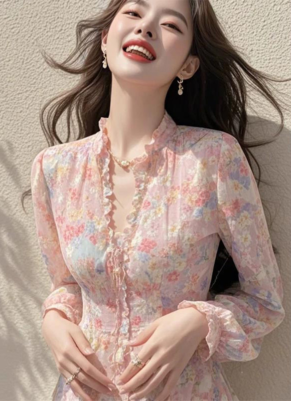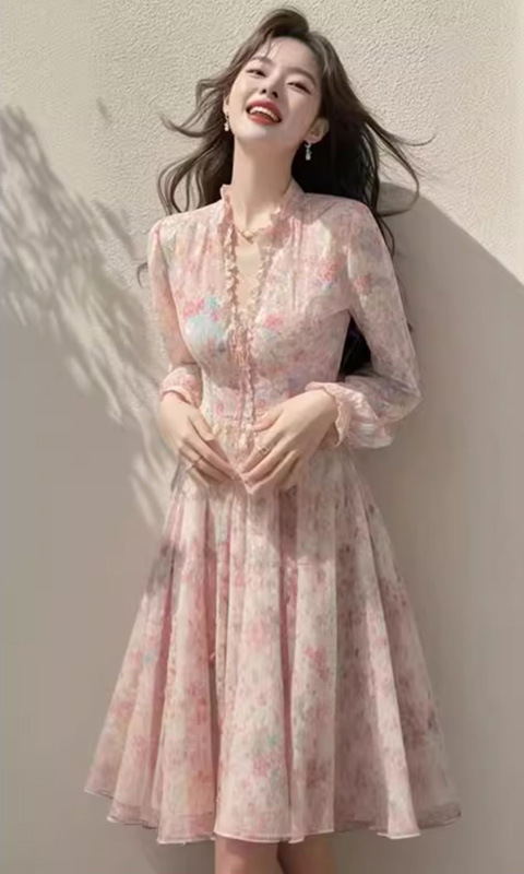 봄 도파민 원피스 정제 된 빛 고급 고급 고급 더러운 분위기 부드러운 스타일 핑크 꽃 원피스스토어 가기