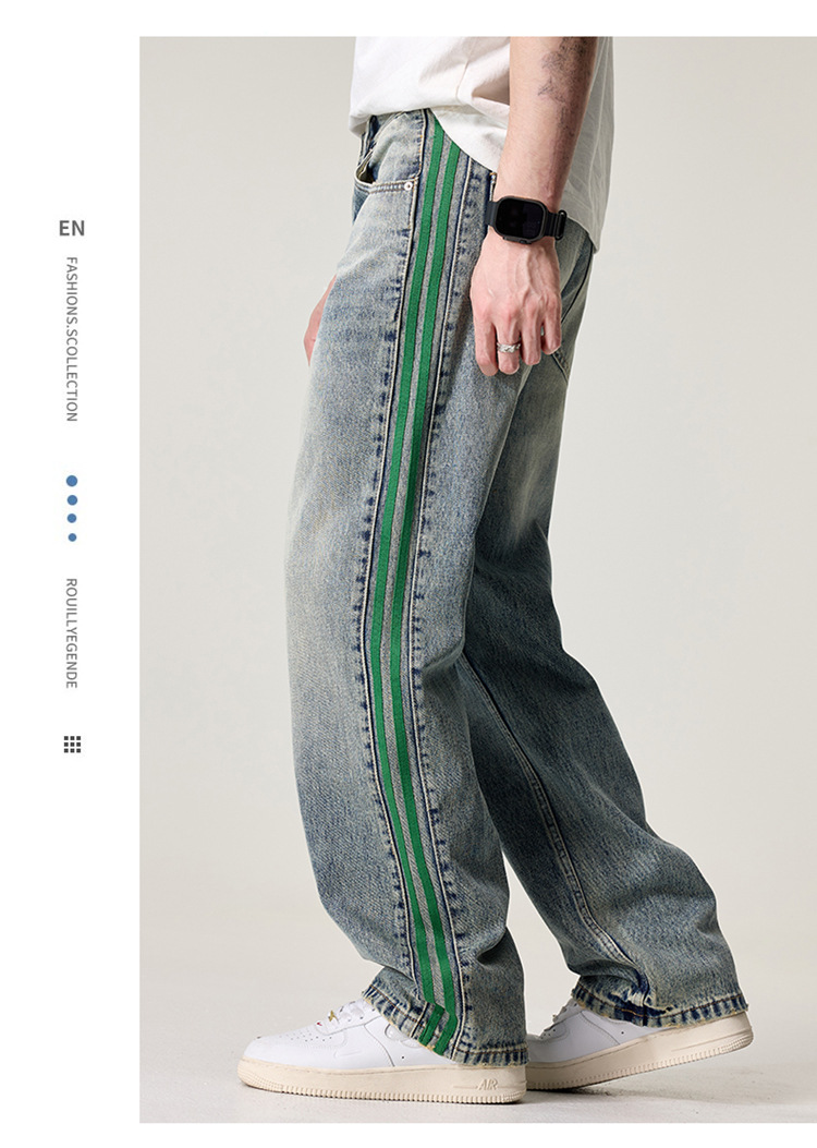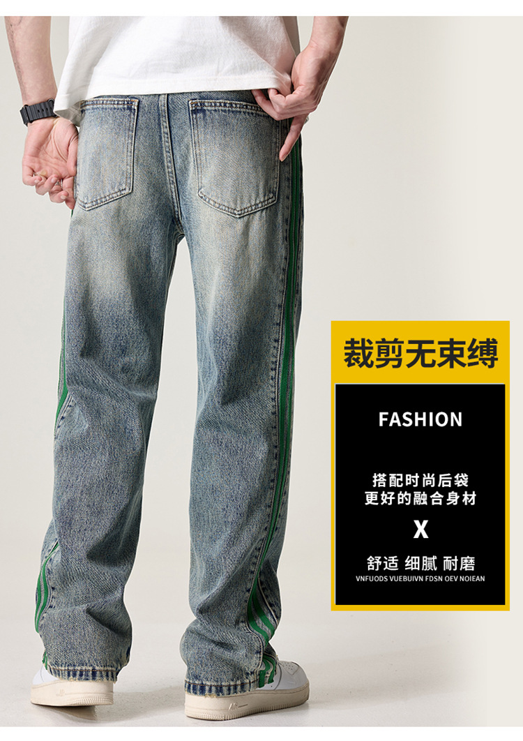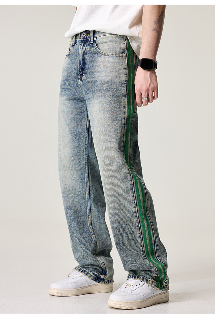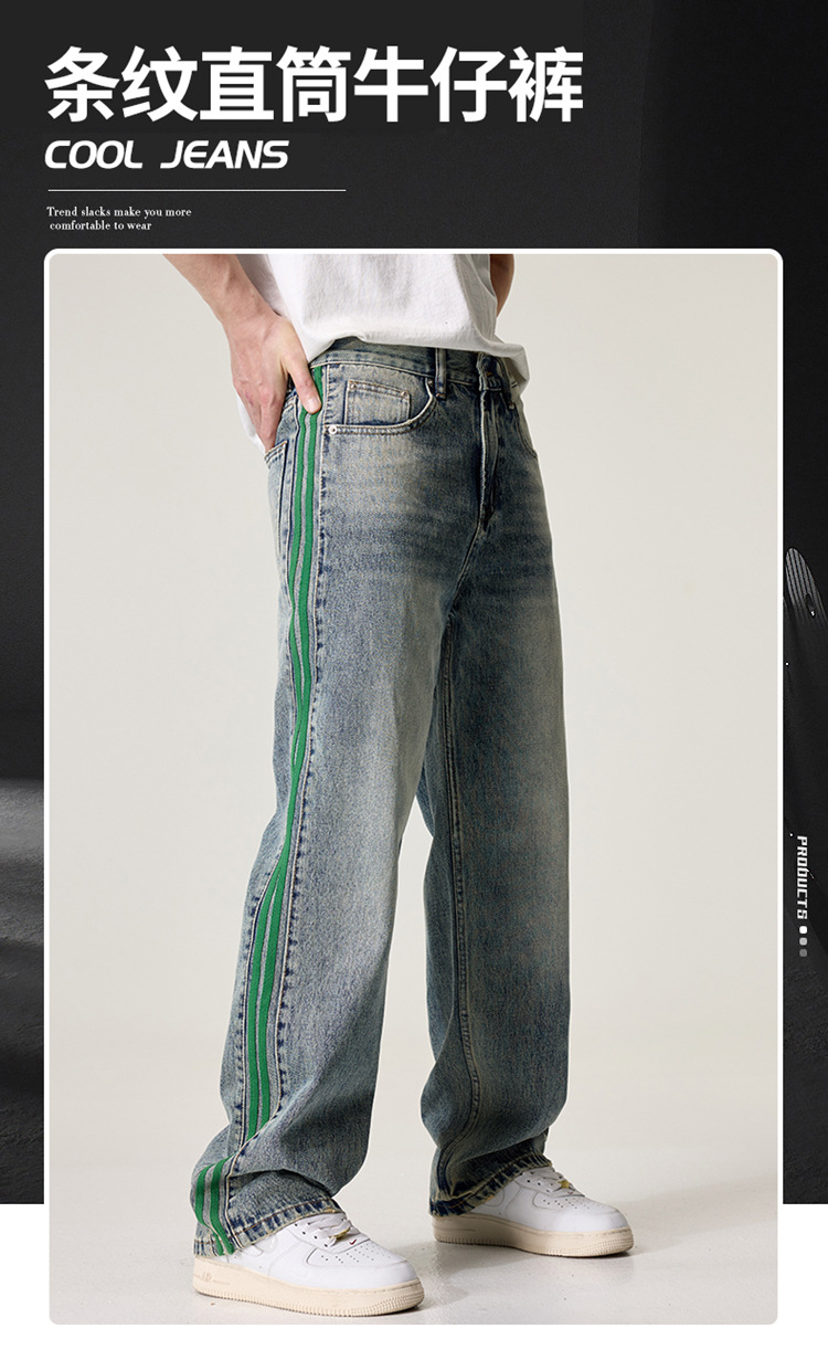 봄 줄무늬 청바지 남자 유행 브랜드 모든 경기 미국 스타일 성격 포장 캐주얼 바지 느슨한 스트레이트 바지 남성복스토어 가기