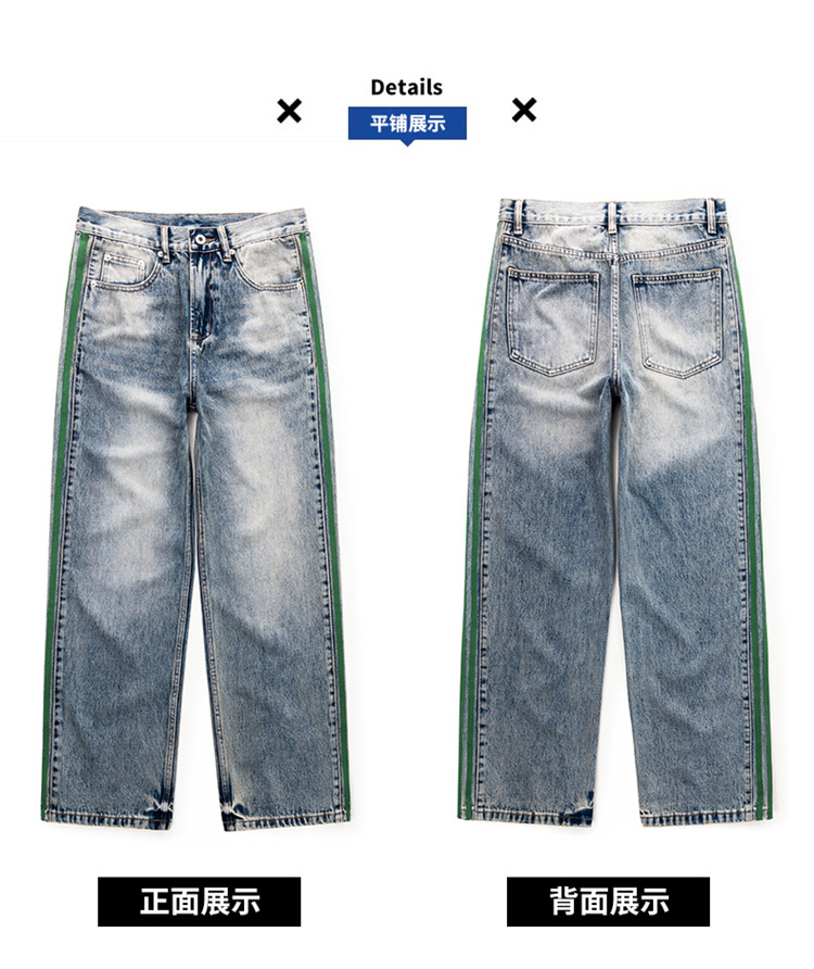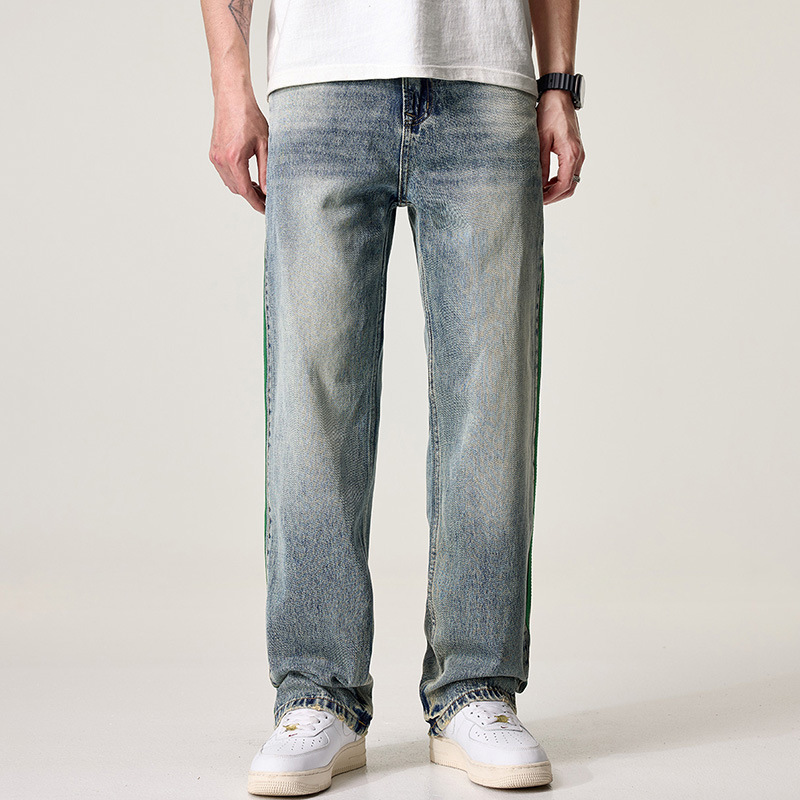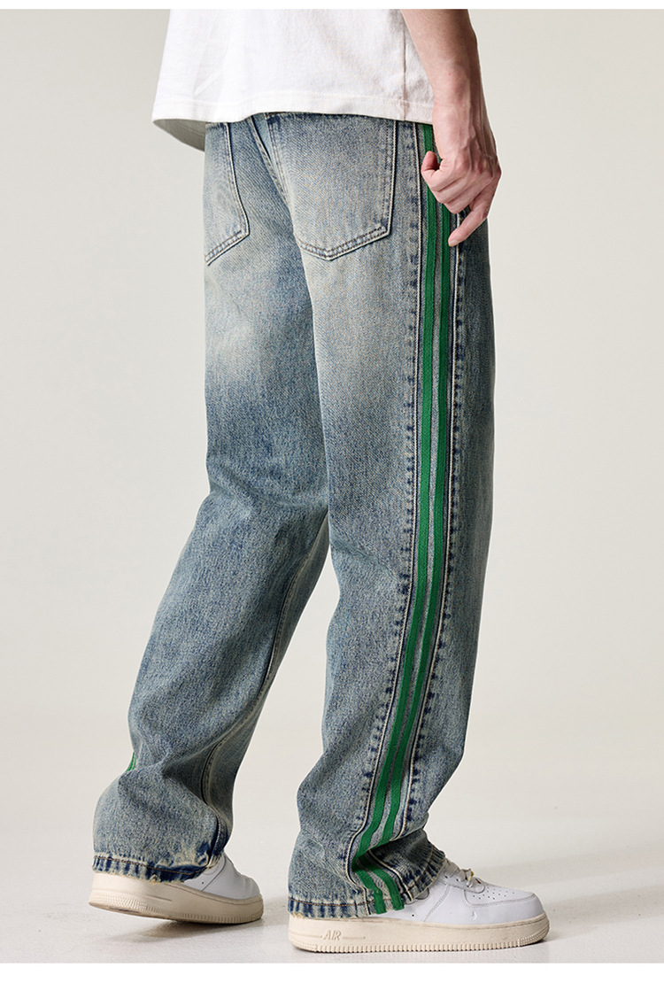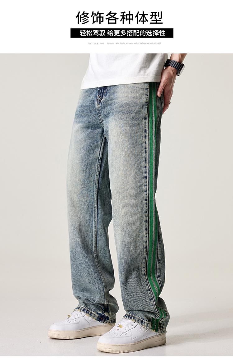 봄 줄무늬 청바지 남자 유행 브랜드 모든 경기 미국 스타일 성격 포장 캐주얼 바지 느슨한 스트레이트 바지 남성복스토어 가기