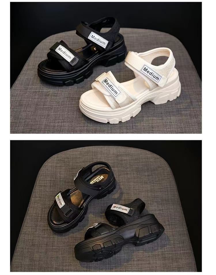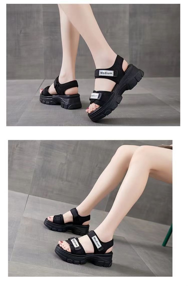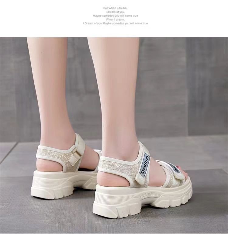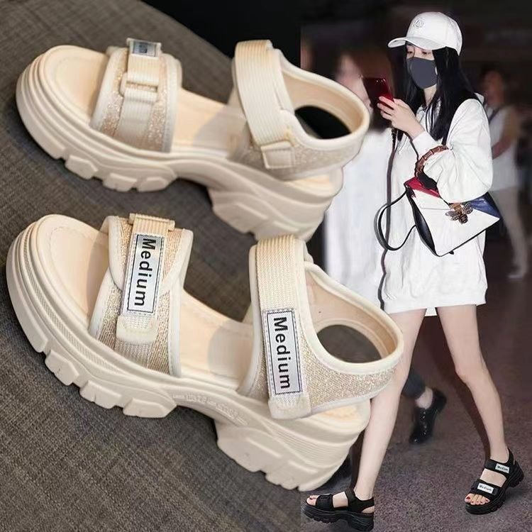 스포츠 샌들 여자 2025 년 새로운 여름 올 매치 플랫폼 두꺼운 바닥 쐐기 유행 외부 착용 비치 여성용 신발스토어 가기