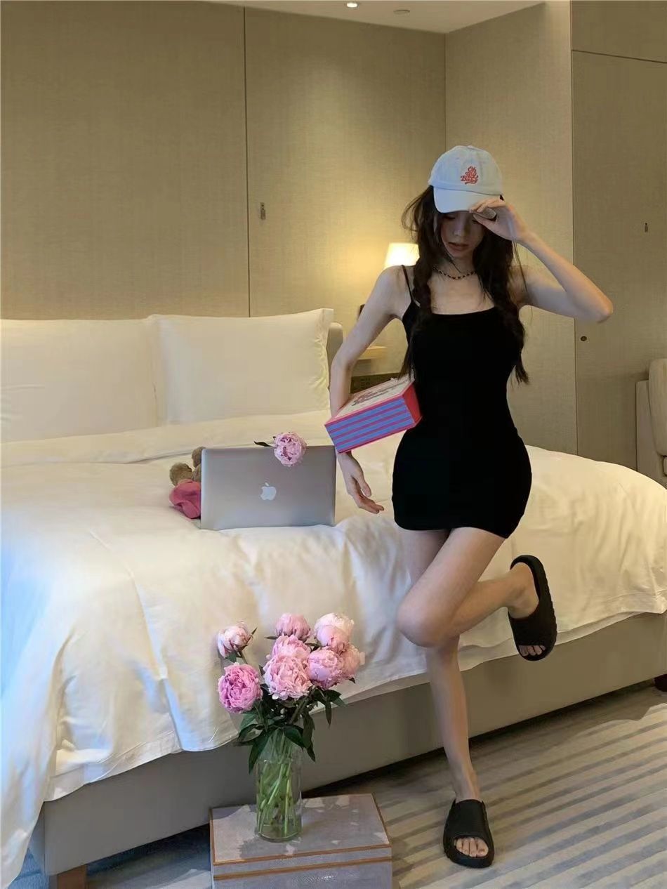 섹시한 작은 검은 꽉 원피스 여성의 봄 스파이스 소녀 내부 회색 스커트 힙합 스커트 슬링 스커트스토어 가기