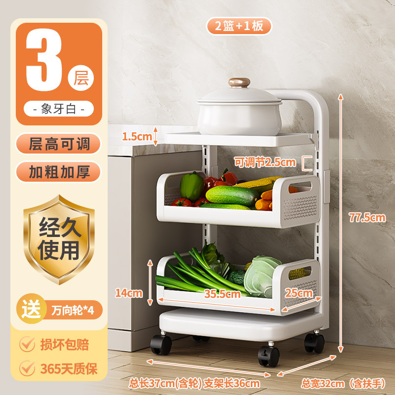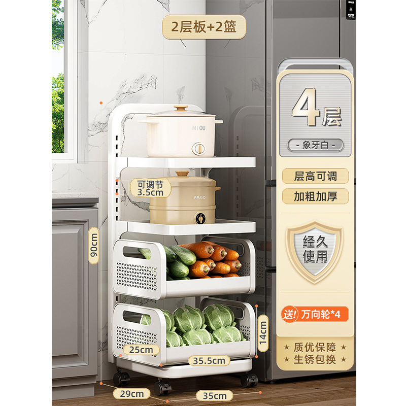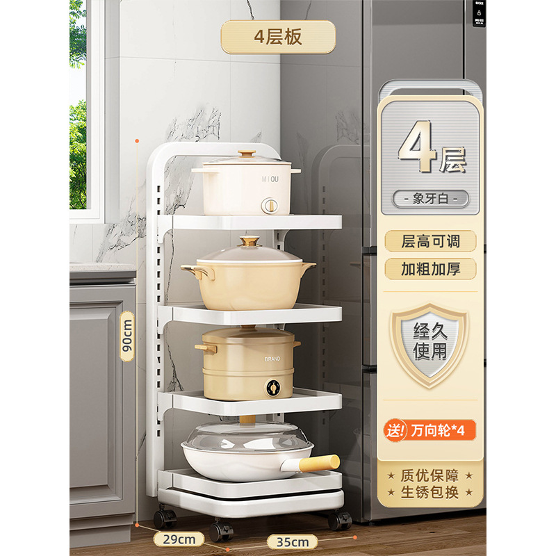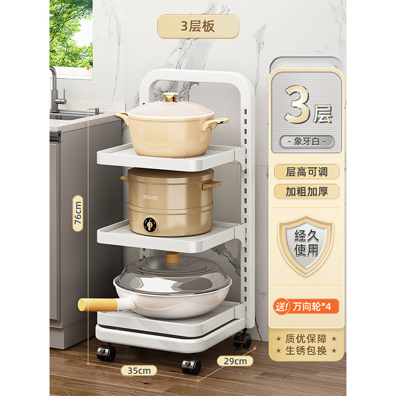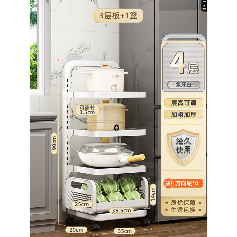 • 흰색 4단 1판 3바구니(높이 조절 가능 + 범용 바퀴) 냄비 및 식기 일체형 랙
