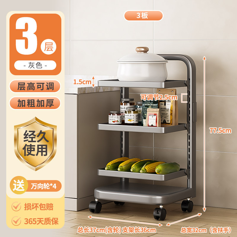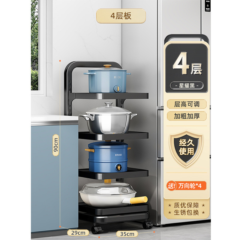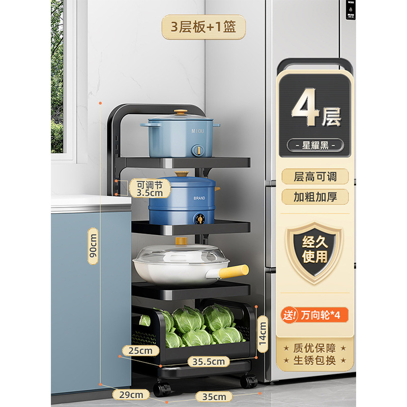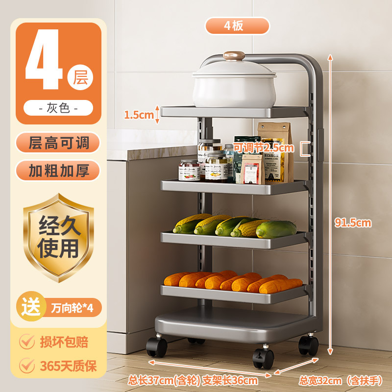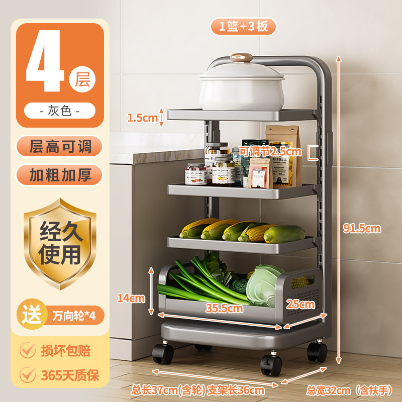 • 건그레이 4단 3판 1바구니(높이 조절 가능 + 범용 바퀴) 냄비 및 식기류 일체형 랙