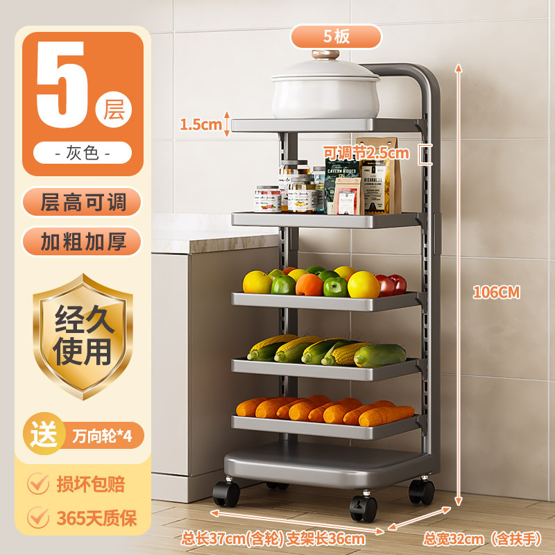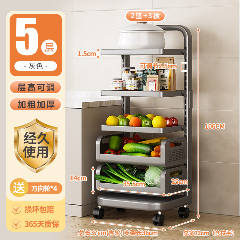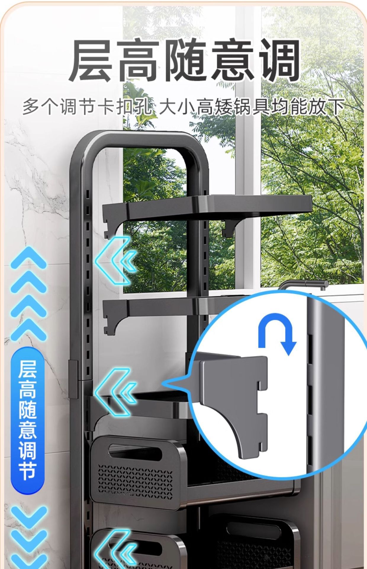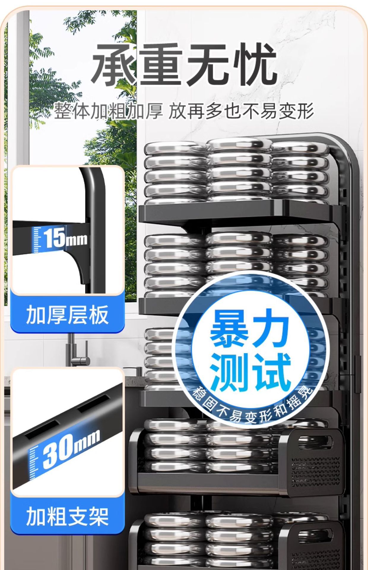 • 건그레이 5단 3판 2바구니(높이 조절 가능 + 범용 바퀴) 냄비 및 식기류 일체형 랙