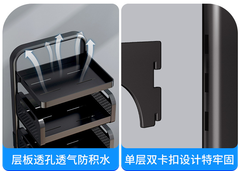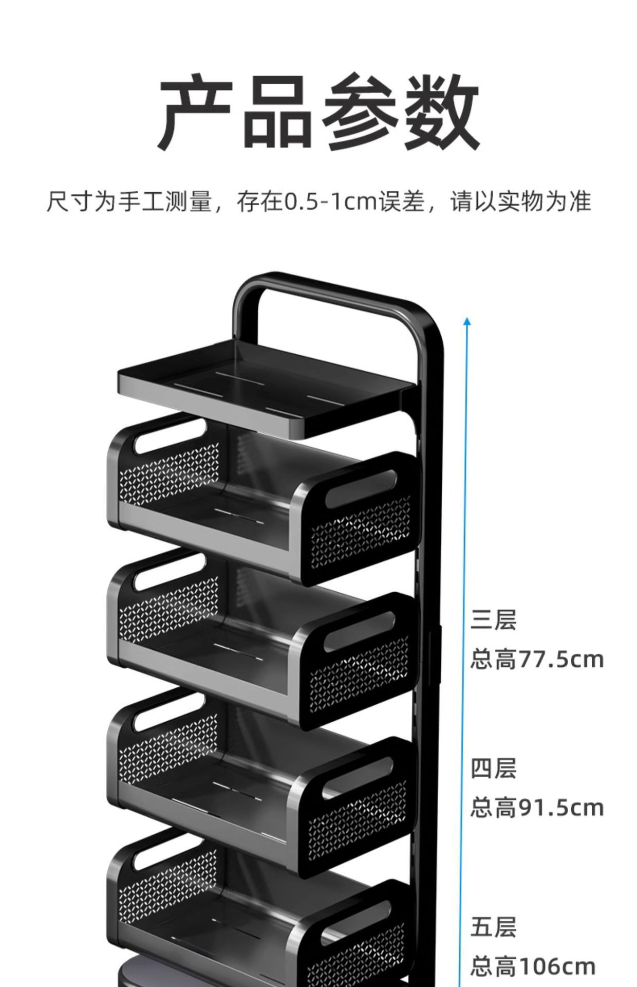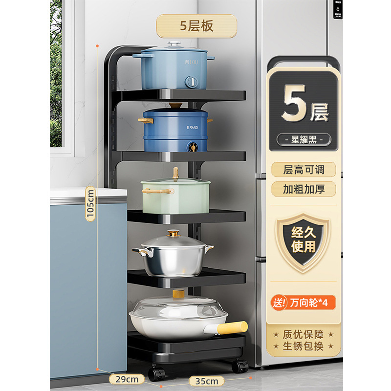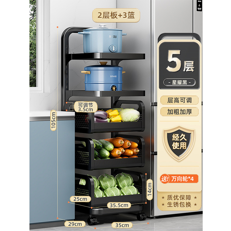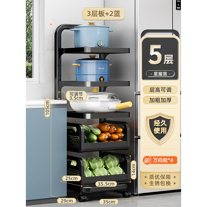 • 검정색 5단 3판 2바구니(높이 조절 가능 + 범용 바퀴) 냄비 및 배수통 일체형 랙