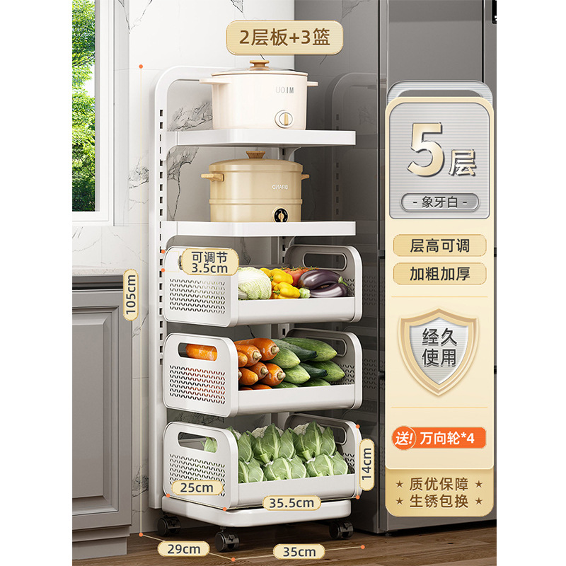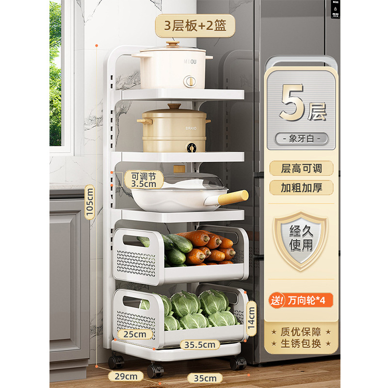 • 흰색 5단 3판 2바구니(높이 조절 가능 + 범용 바퀴) 냄비 및 배수통 일체형 랙