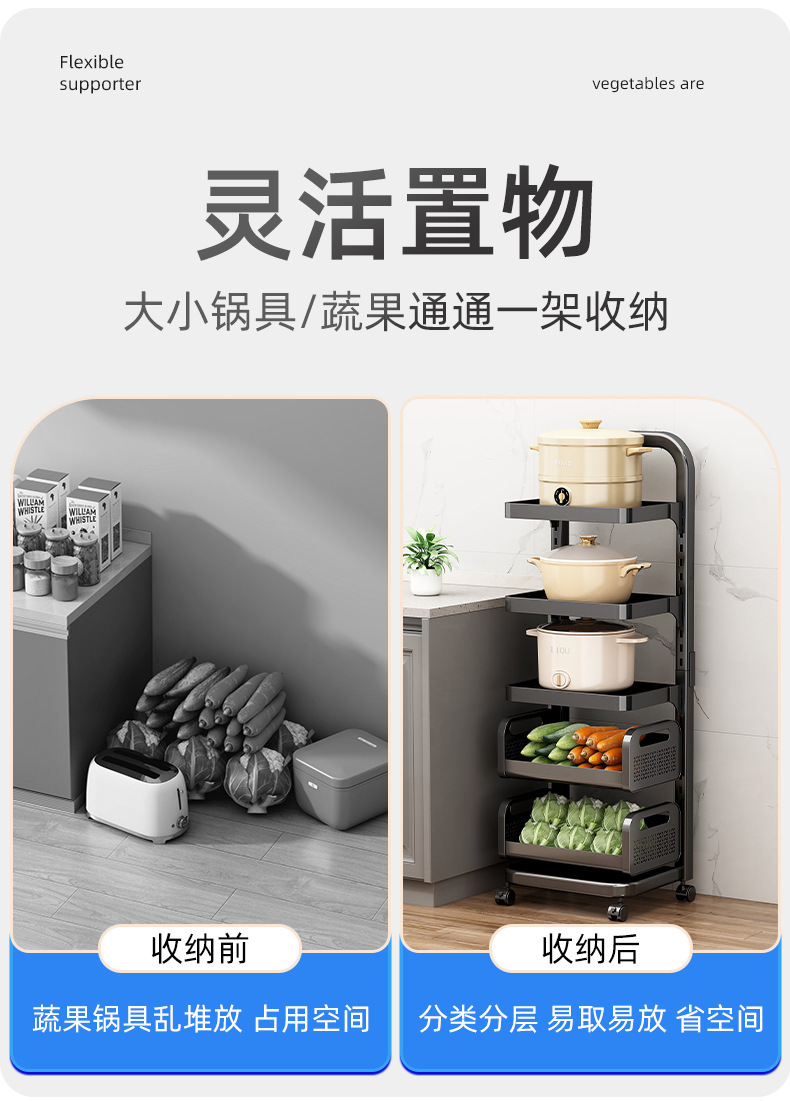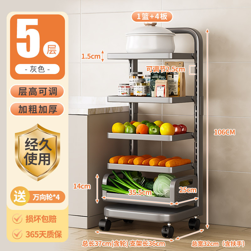 주방 트롤리 보관 랙 전체 탄소강 다층 바닥에서 천장까지 이동식 야채 바구니 보관 랙 야채 냄비를 보관하는 바닥 보관스토어 가기