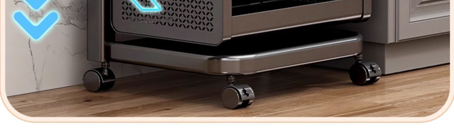 • 회색 4단 원보드 3바구니(높이 조절 가능 + 범용 바퀴) 냄비 및 식기 일체형 랙