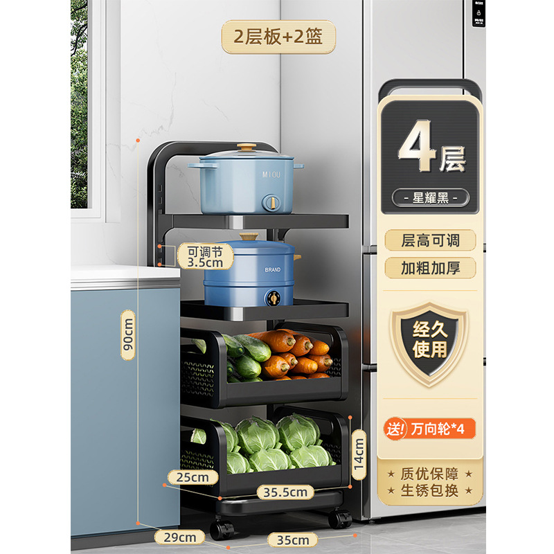 • 검정색 4단 2판 2바구니(높이 조절 가능 + 범용 바퀴) 냄비 및 배수통 일체형 랙