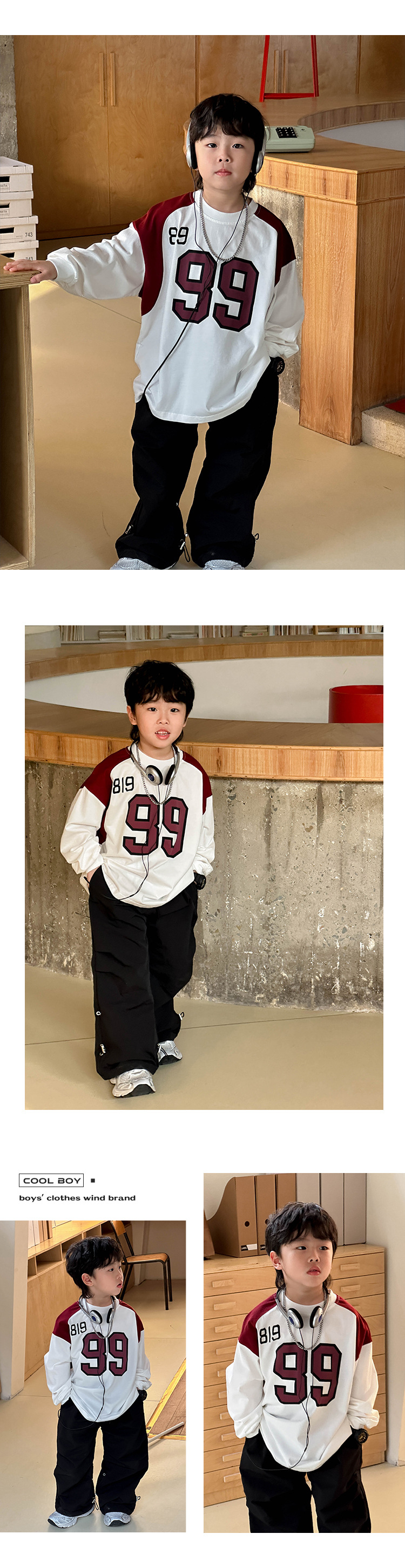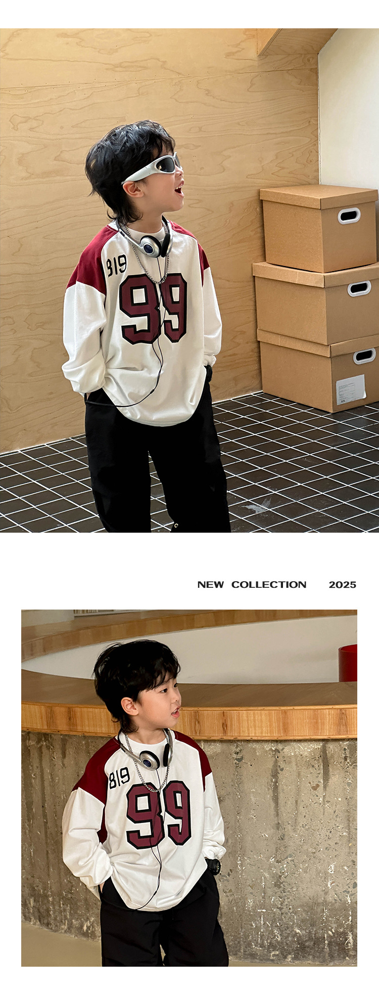소년 패션 티셔츠 2025 가을 새로운 어린이 한국 스타일 느슨한 라운드 넥 탑 중소 어린이를위한 다목적 가을 의류 트렌드스토어 가기