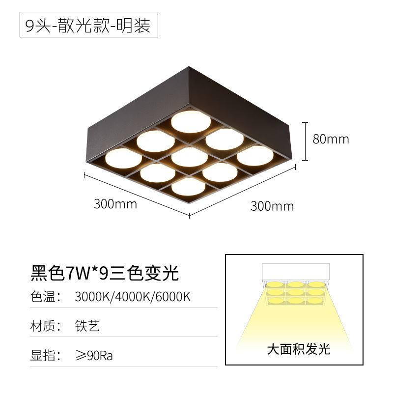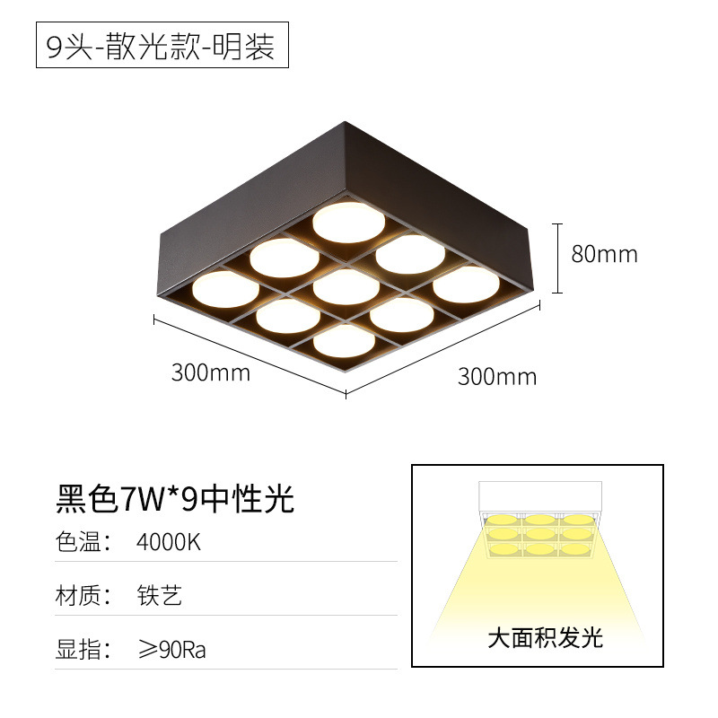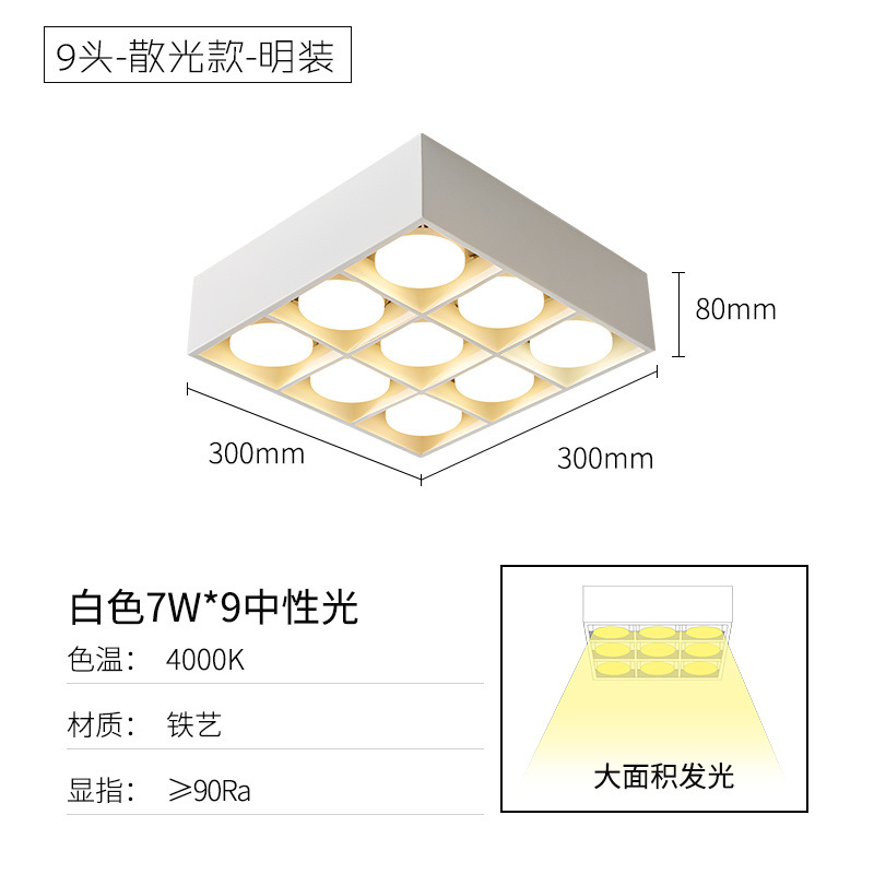 • 정사각형 9개 헤드 흰색 63W 중성광