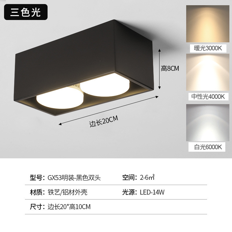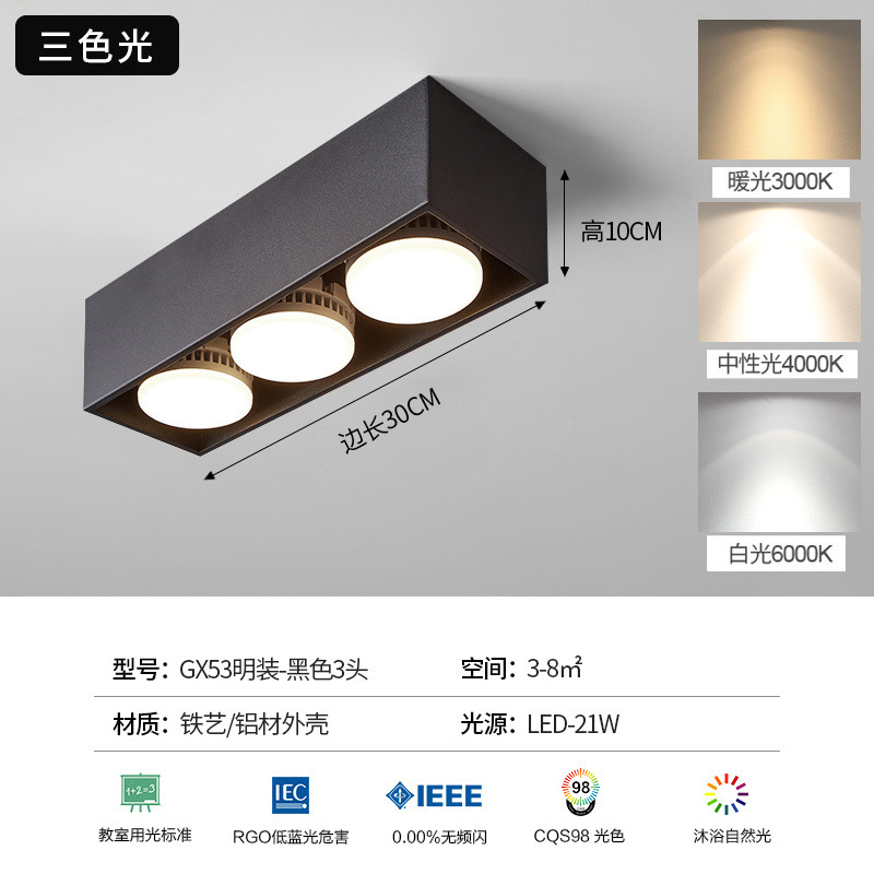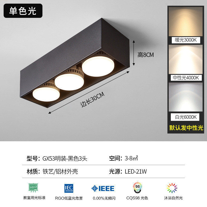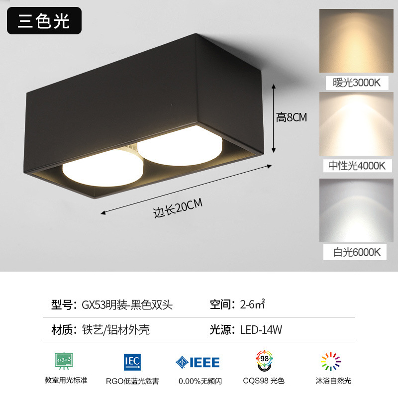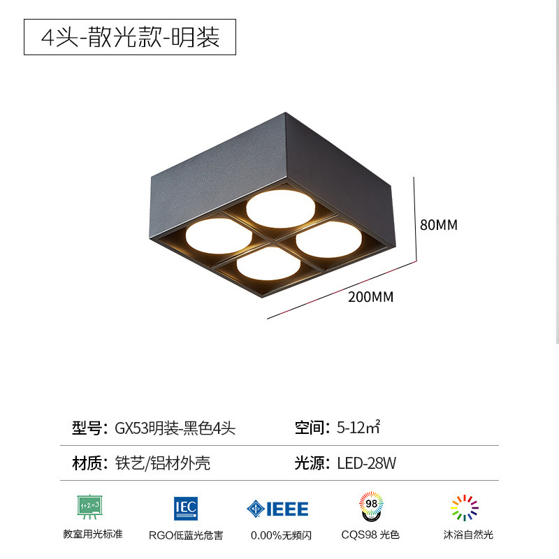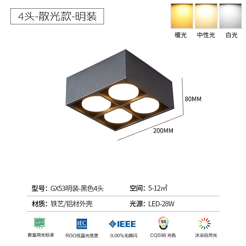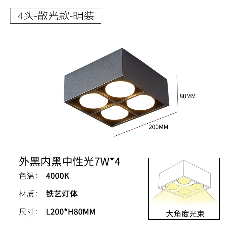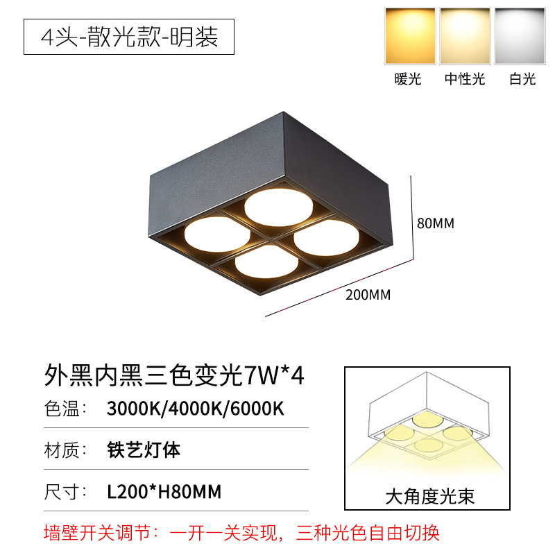 • 사각 검정색 4개 헤드 28W-3색 조명