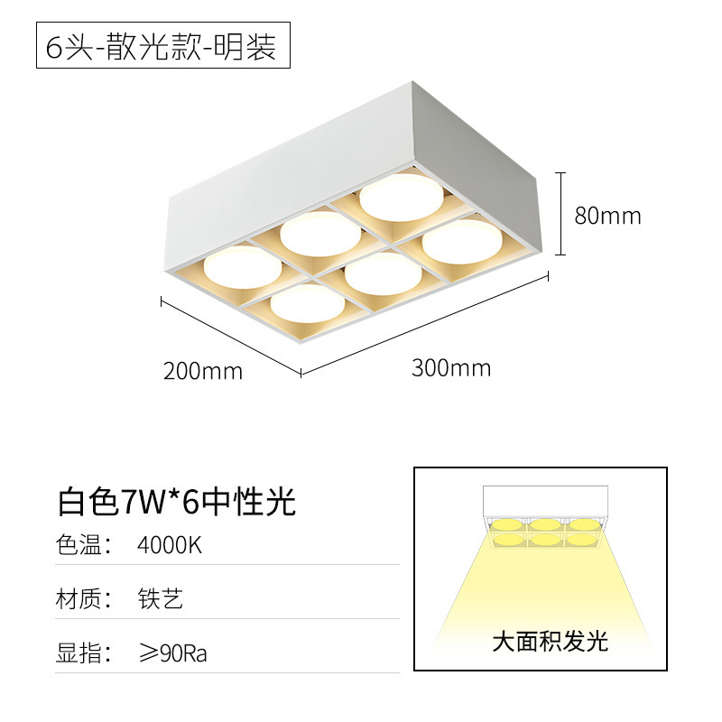 • 더블 레이어 흰색 6개 헤드 - 42W 중성광