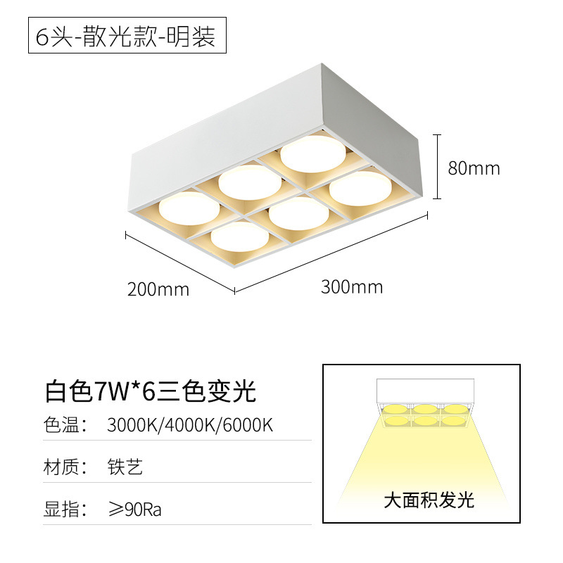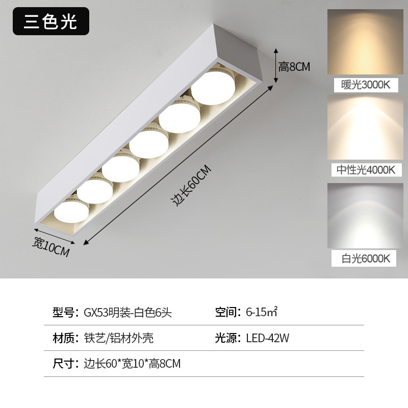 • 긴 흰색 6개 헤드 - 42W 3색 조명