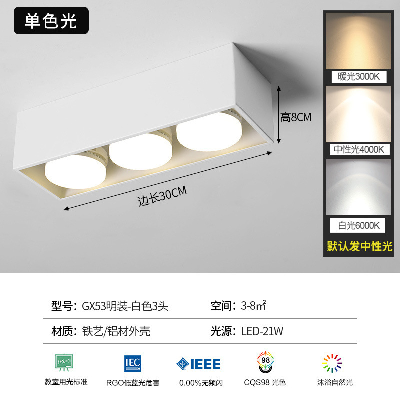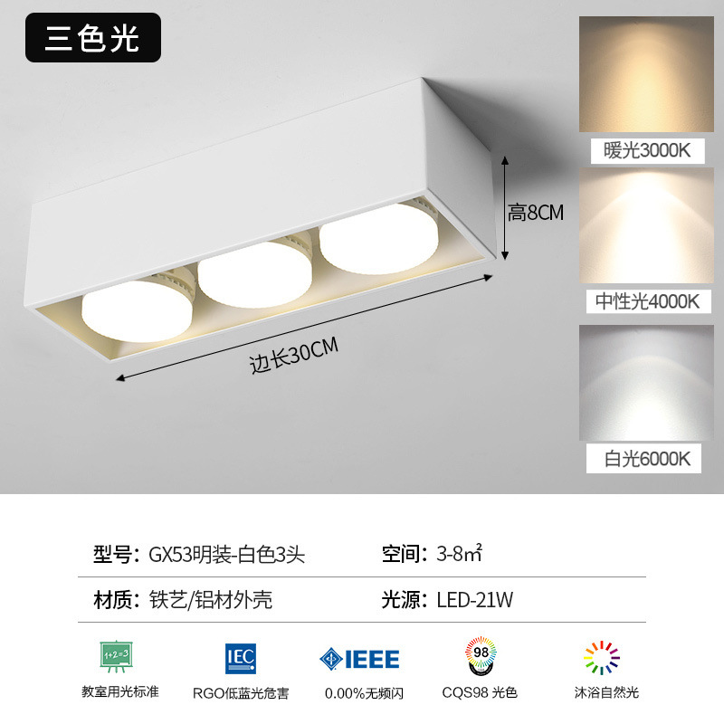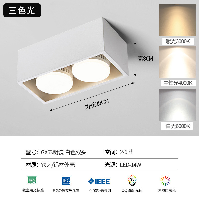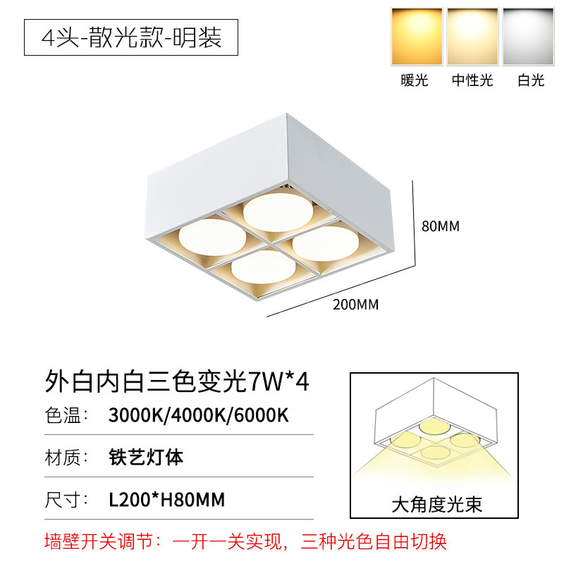 • 사각 흰색 4개 헤드 28W-3색 조명