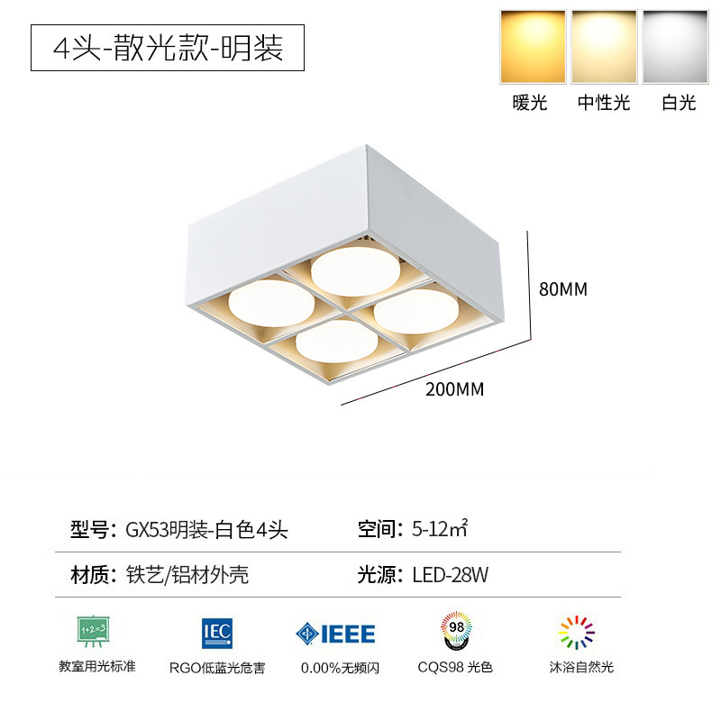 • 정사각형 흰색 4개 헤드 28W 중립 조명