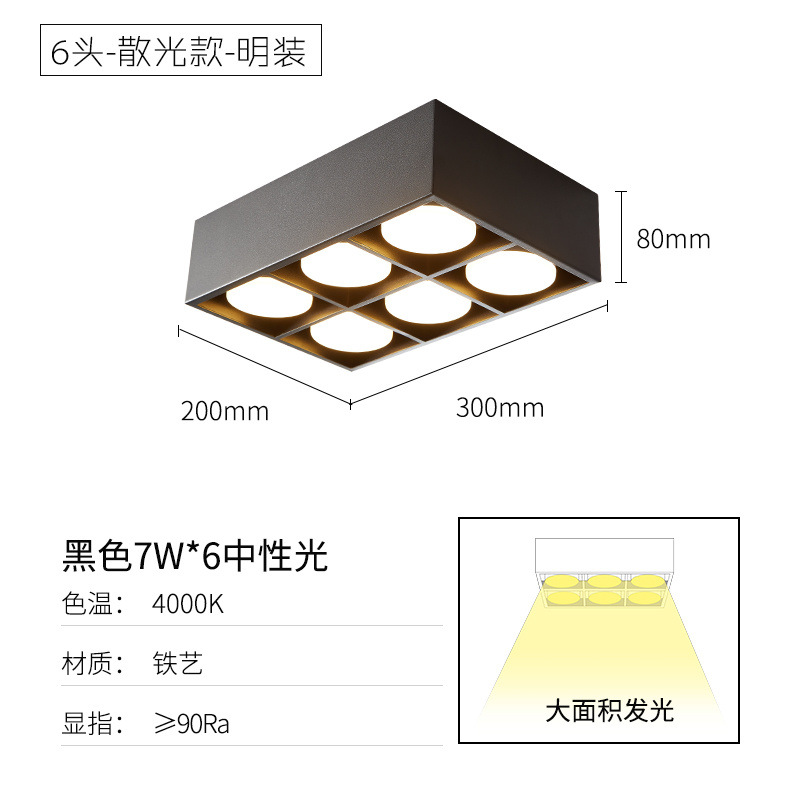 • 긴 검정색 6개 헤드 - 42W 중성광