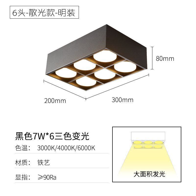 • 더블 레이어 검정색 6개 헤드 - 42W 중성광