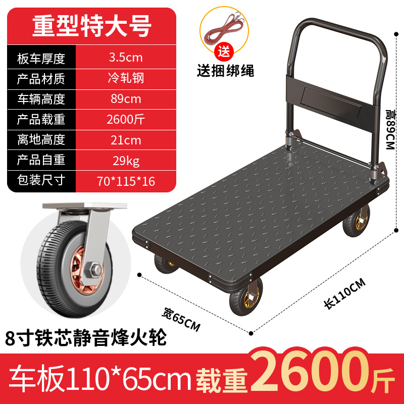 • 매우 두꺼운 검정색 강철⭐110*65 헤비듀티 [8inch 철심 무음 비콘 휠] 적재 용량 1300kg