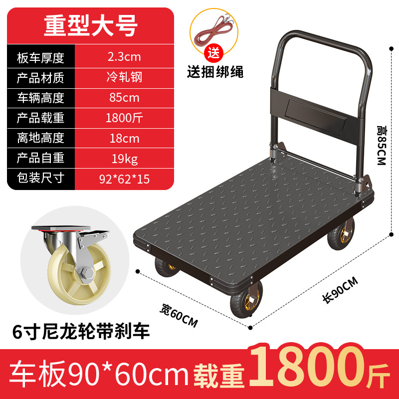 • 매우 두꺼운 검정색 강철⭐90*60 헤비듀티 [브레이크 장착 6inch 나일론 휠] 적재 용량 900kg