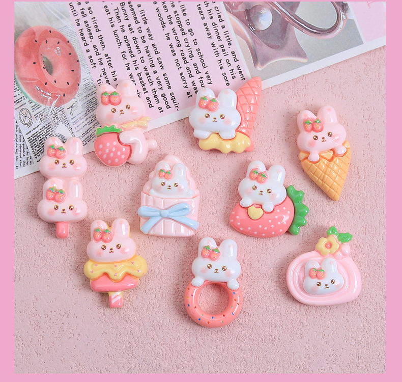 귀여운 토끼 토끼 아이스크림 음식 놀이 만화 수제 오일 젤 diy 머리핀 냉장고 소재 수지 액세서리 도매스토어 가기