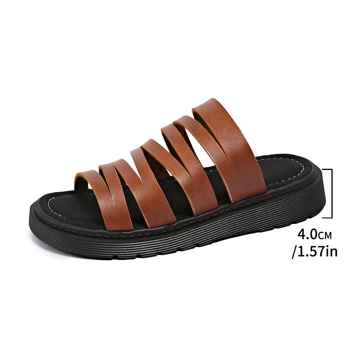 대외 무역 플러스 사이즈 레트로 캐주얼 로마 슬리퍼 여성의 2025 년 여름 새로운 두꺼운 부드러운 가죽 올 매치 아우터 슬리퍼