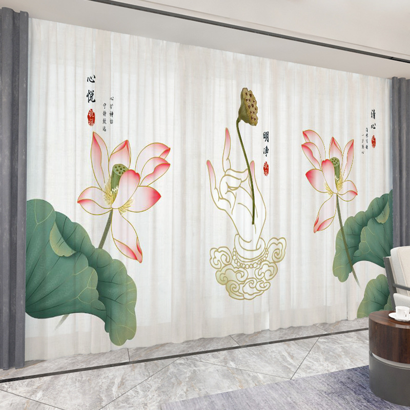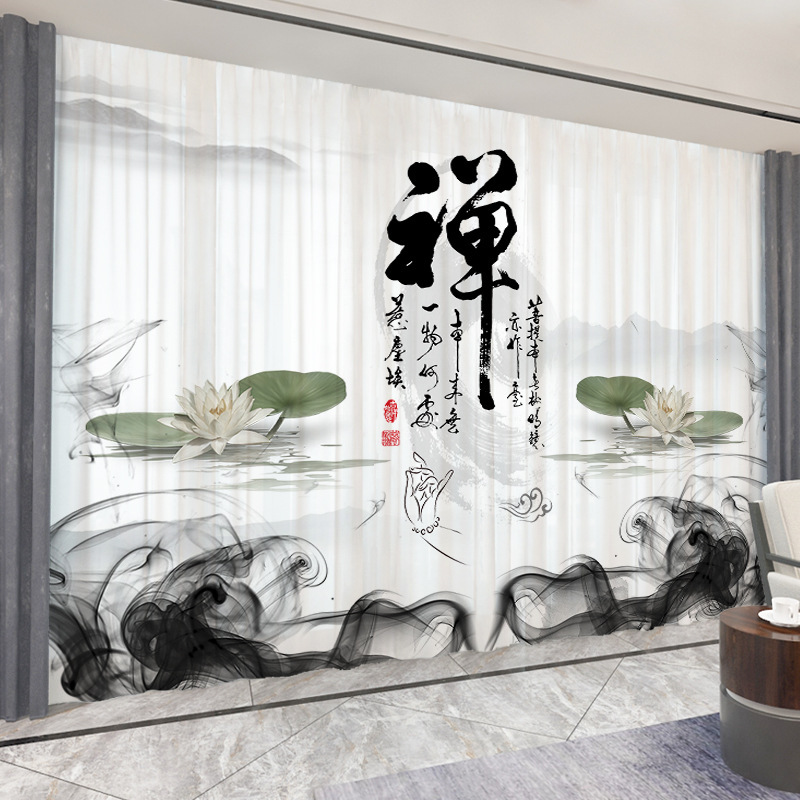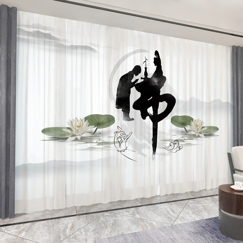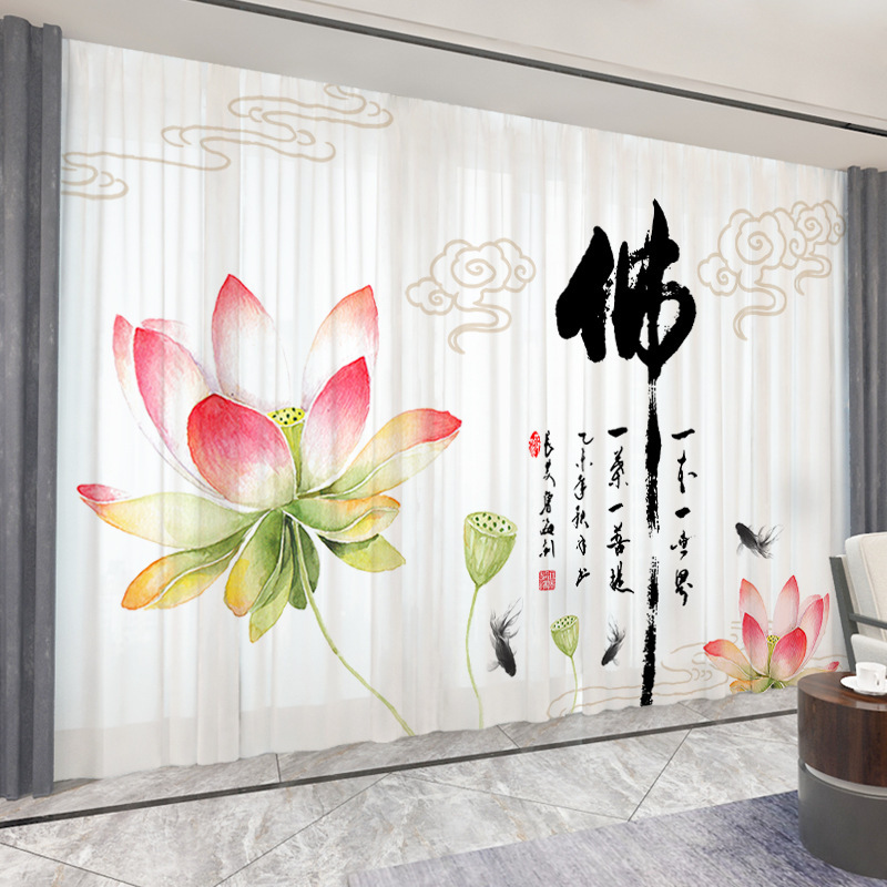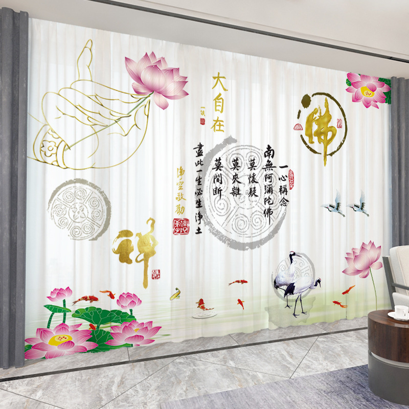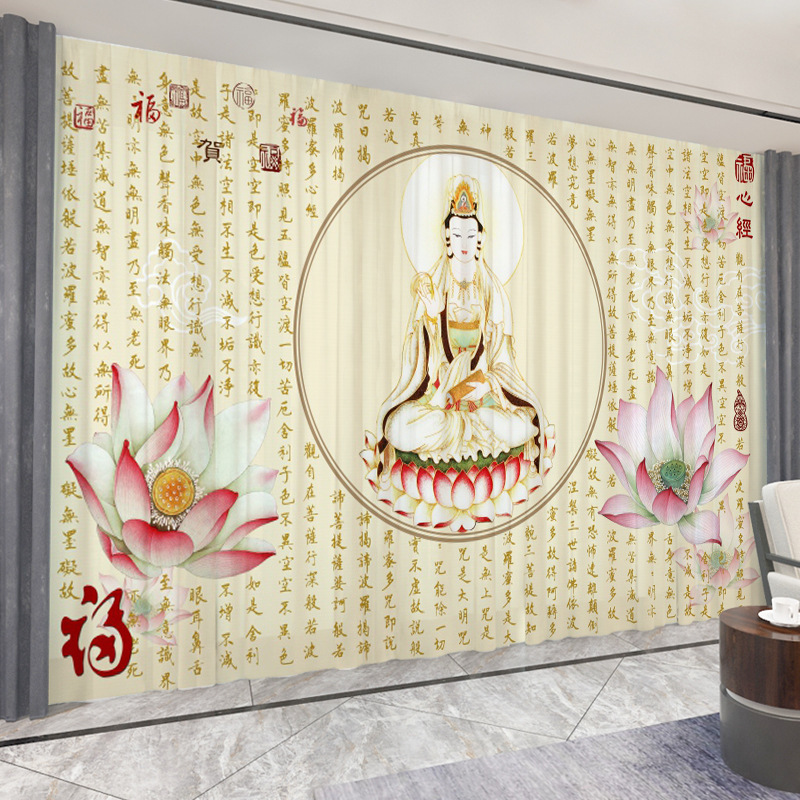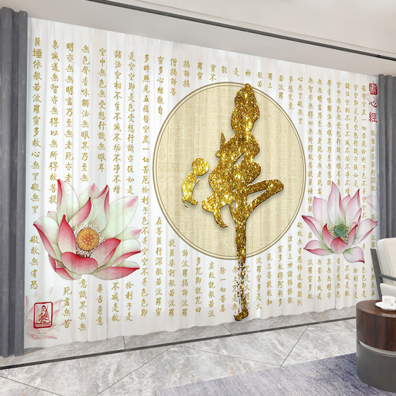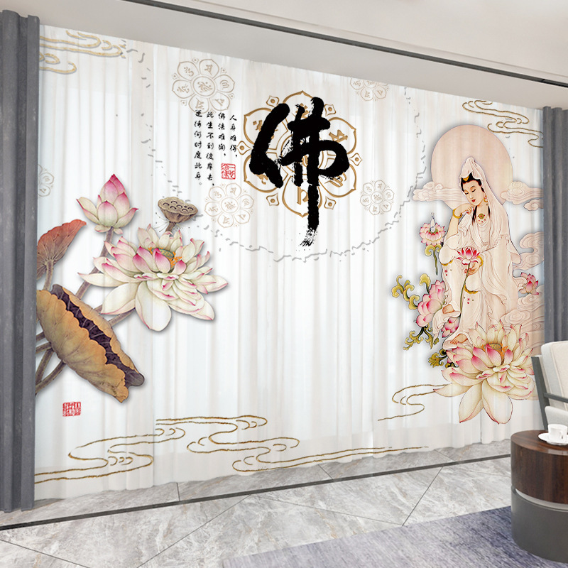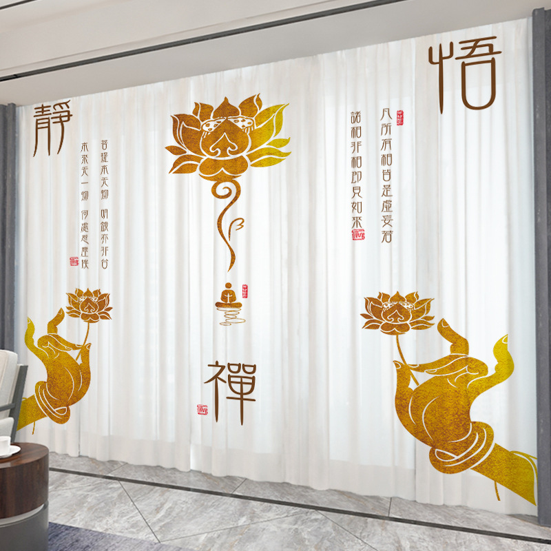 불교 선 커튼 중국 스타일 부처님 홀 차단 커튼 도교 풍경 차단 천 커튼 연꽃 티 룸 파티션 장식