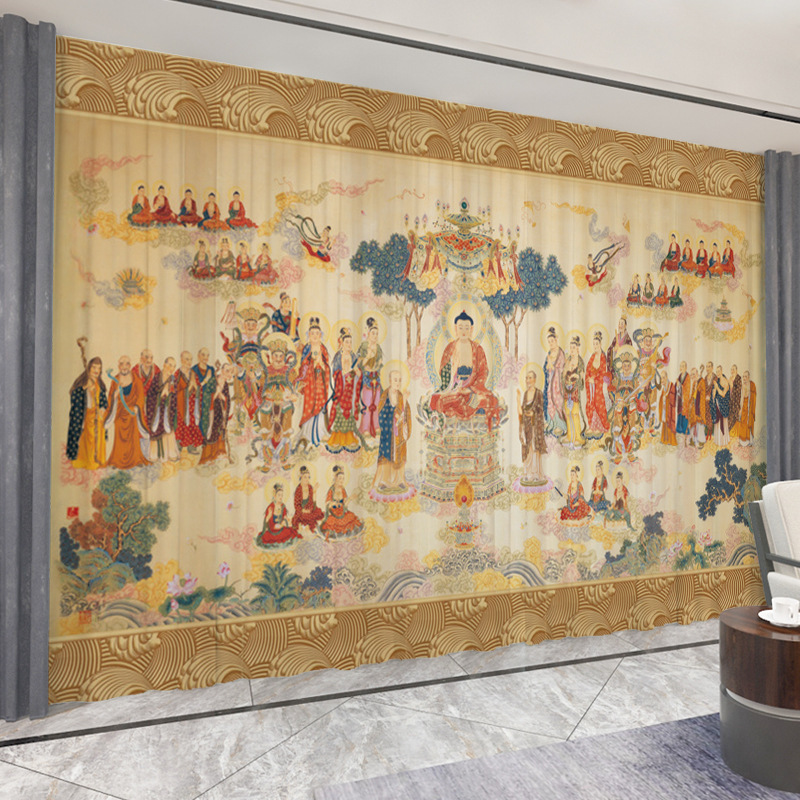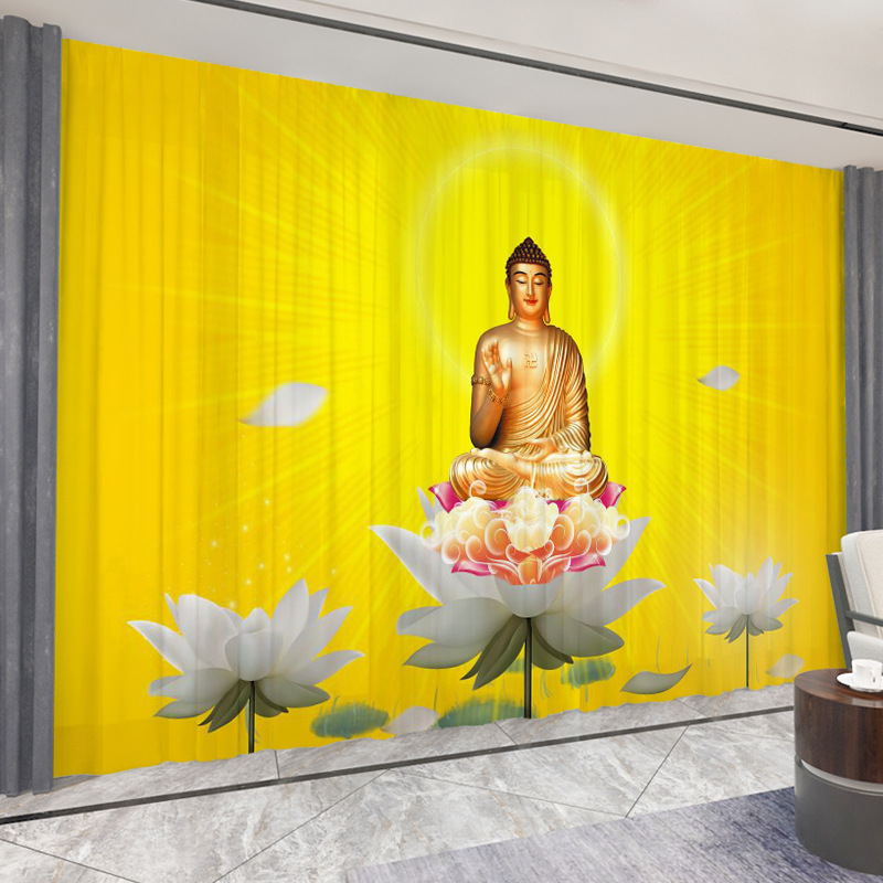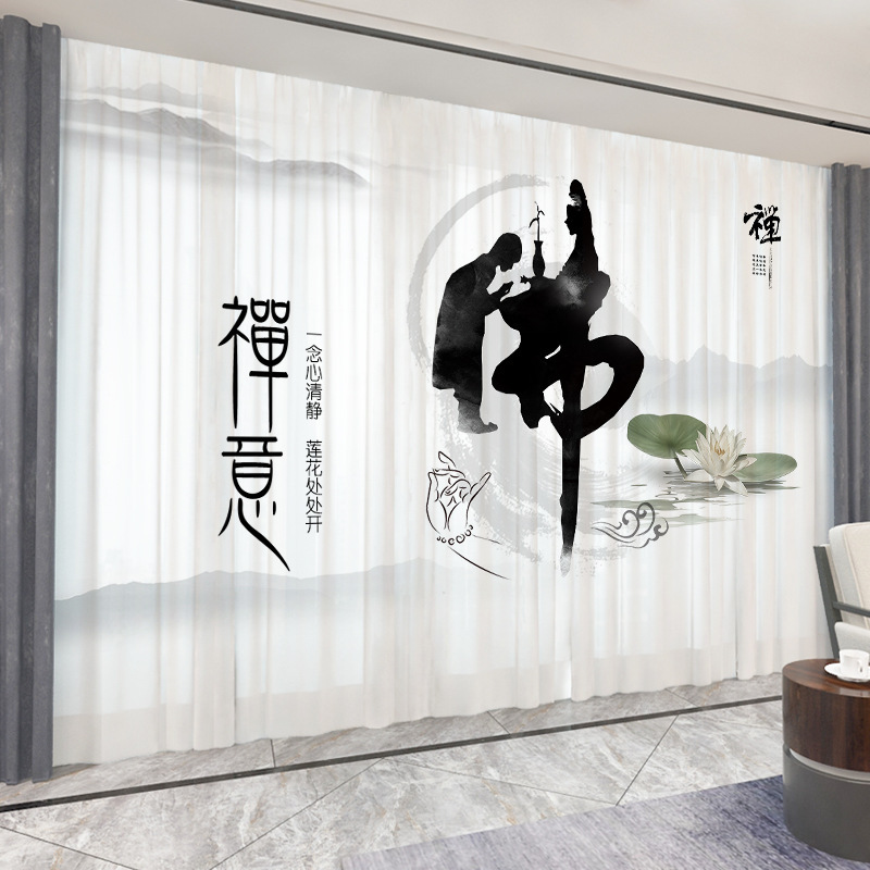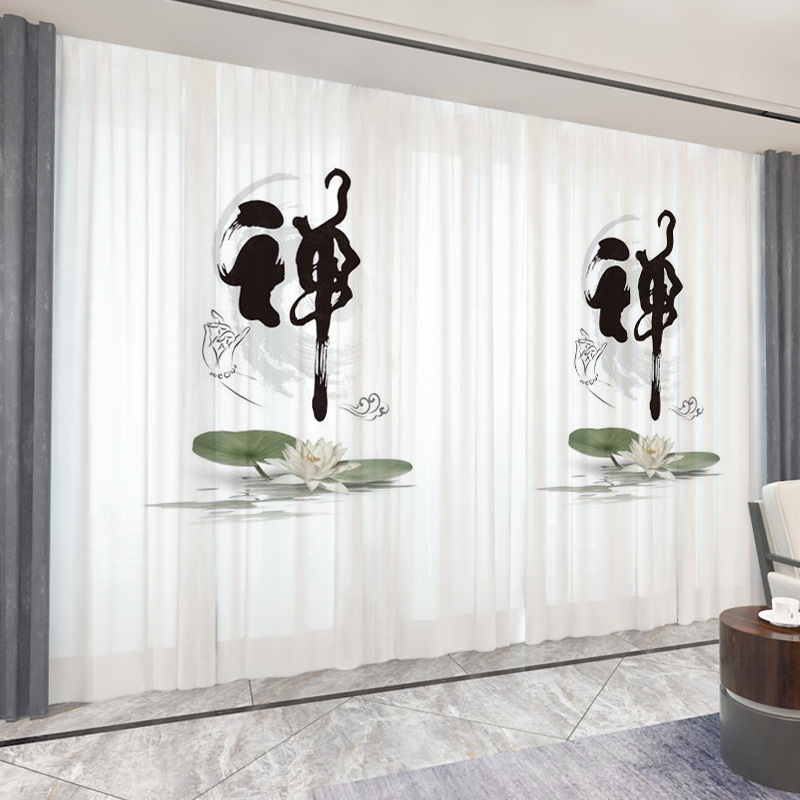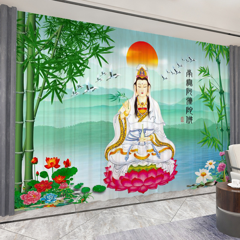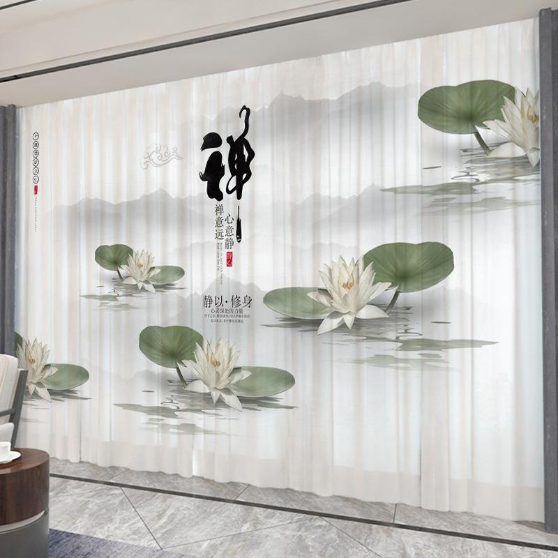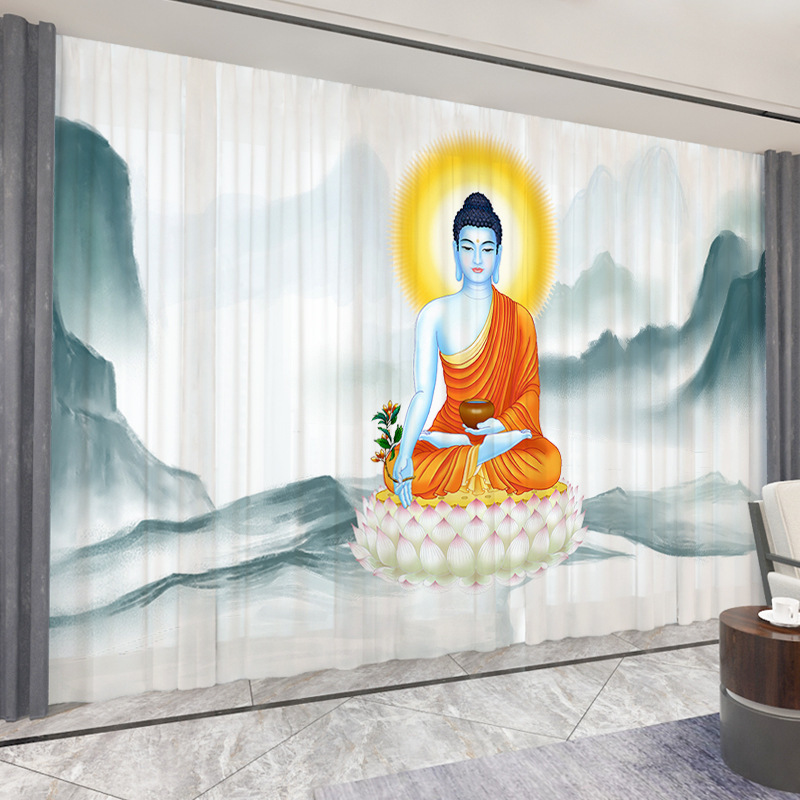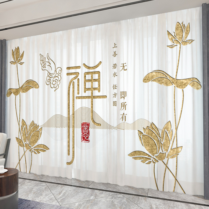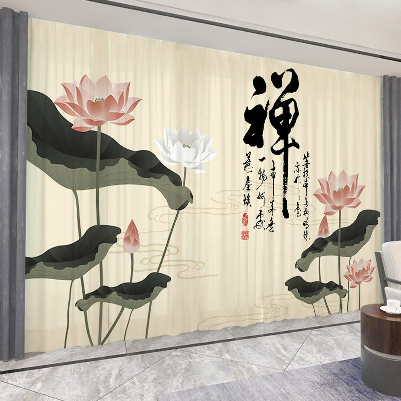 불교 선 커튼 중국 스타일 부처님 홀 차단 커튼 도교 풍경 차단 천 커튼 연꽃 티 룸 파티션 장식