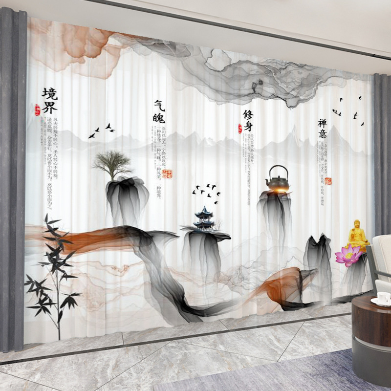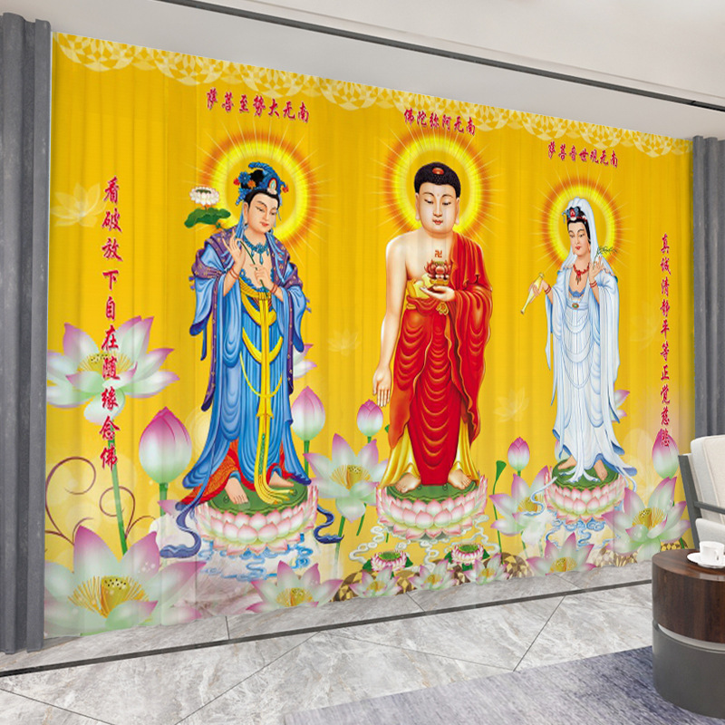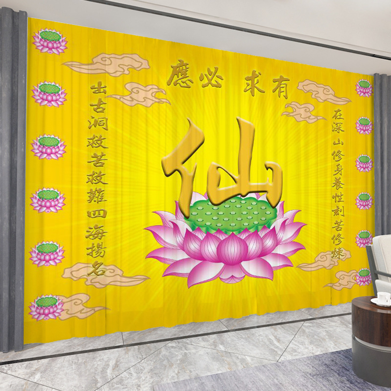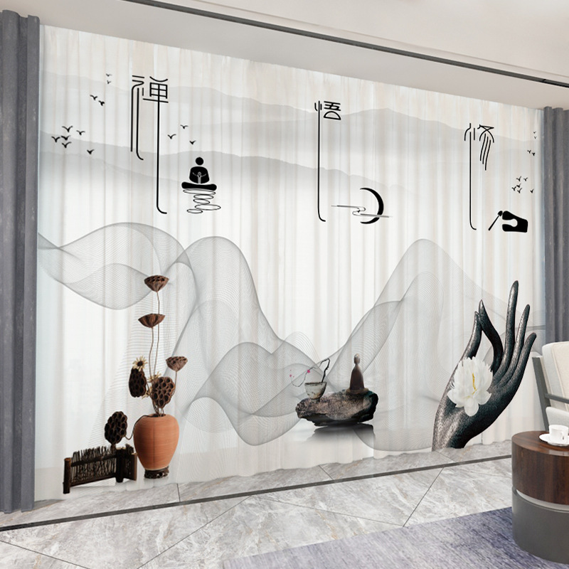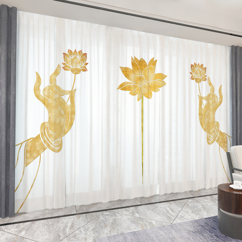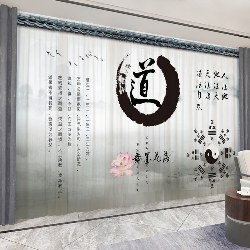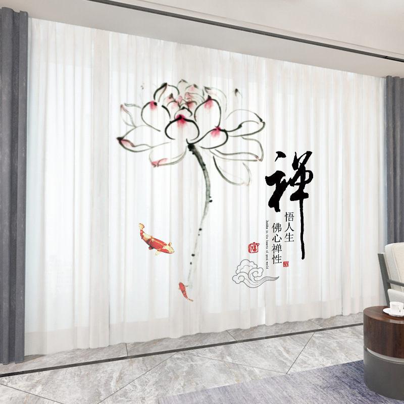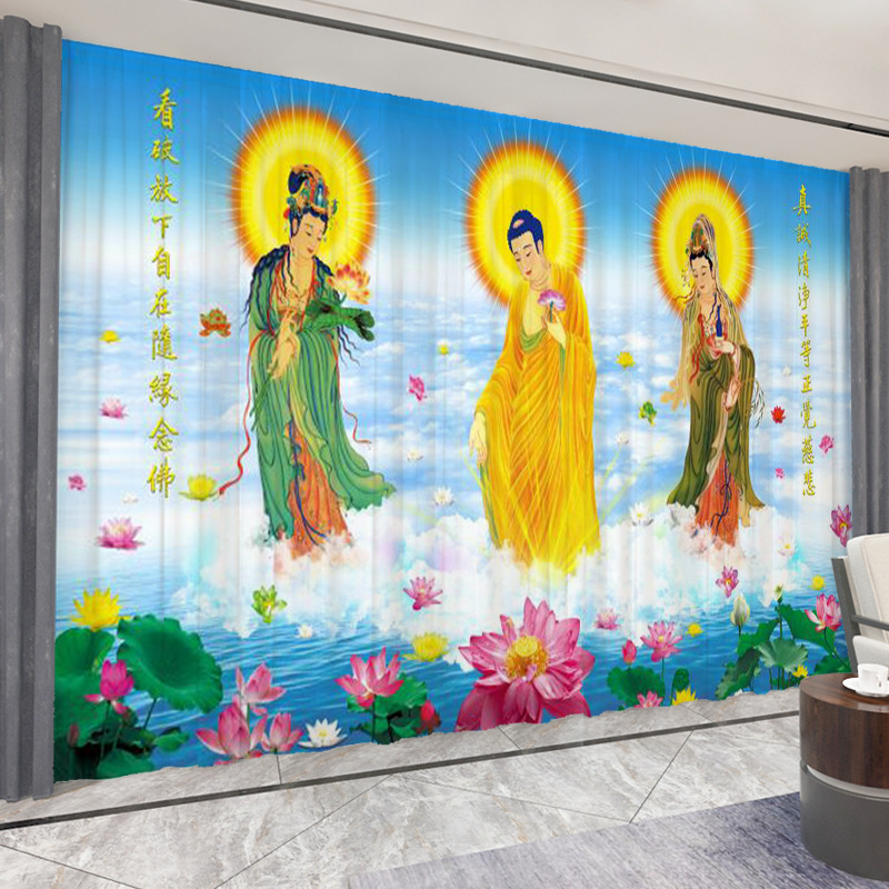 불교 선 커튼 중국 스타일 부처님 홀 차단 커튼 도교 풍경 차단 천 커튼 연꽃 티 룸 파티션 장식