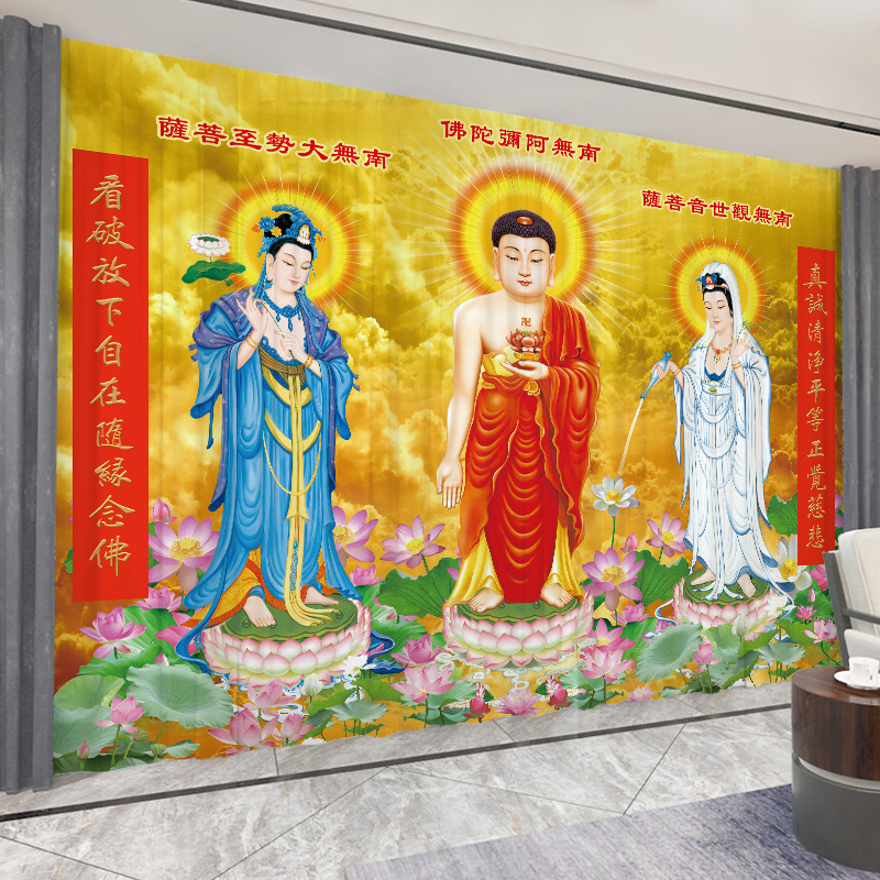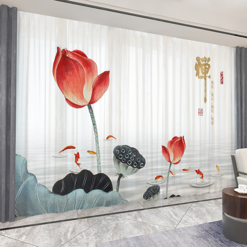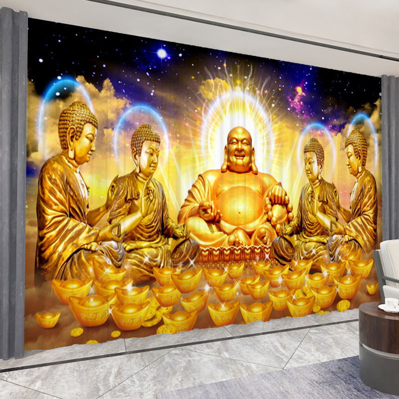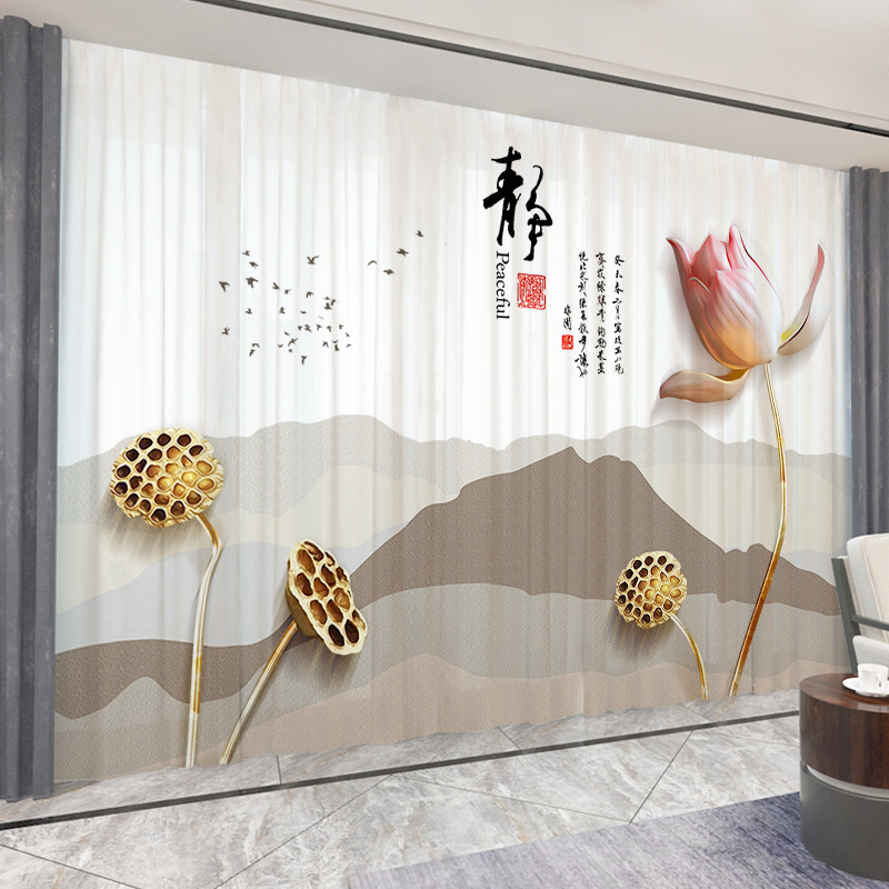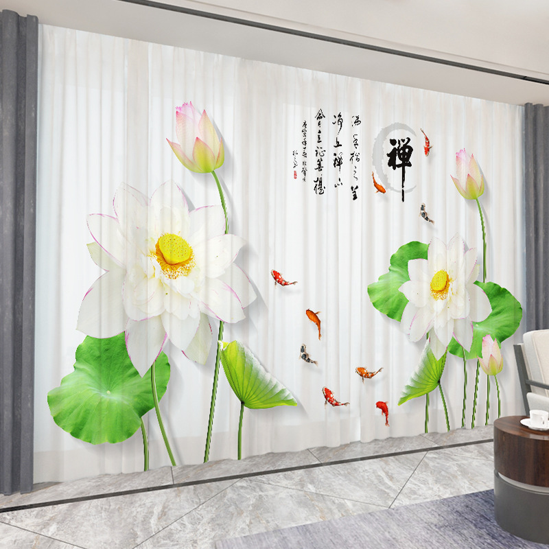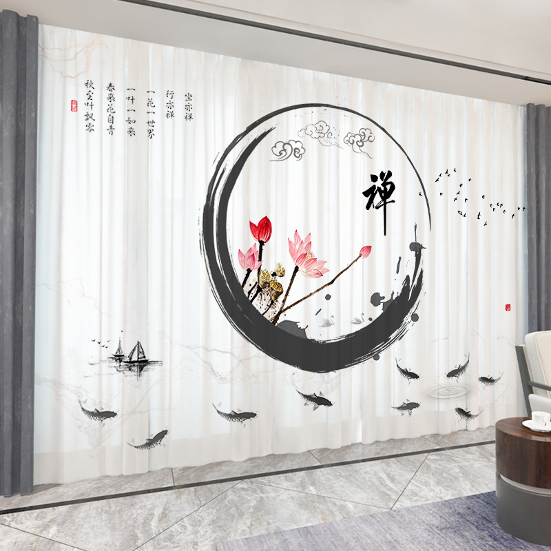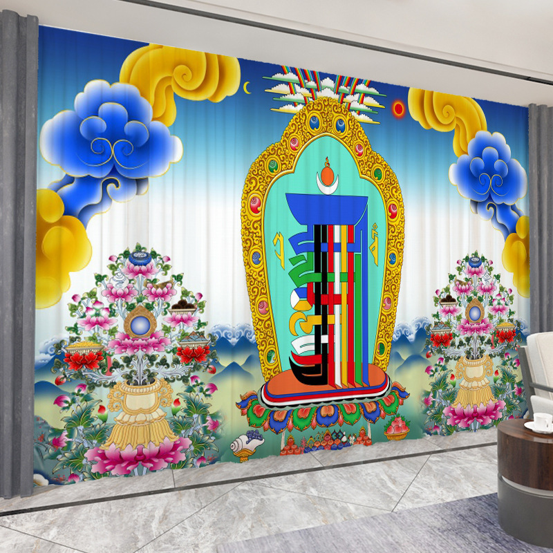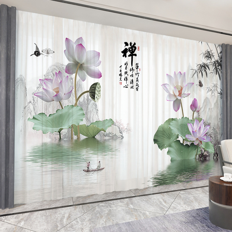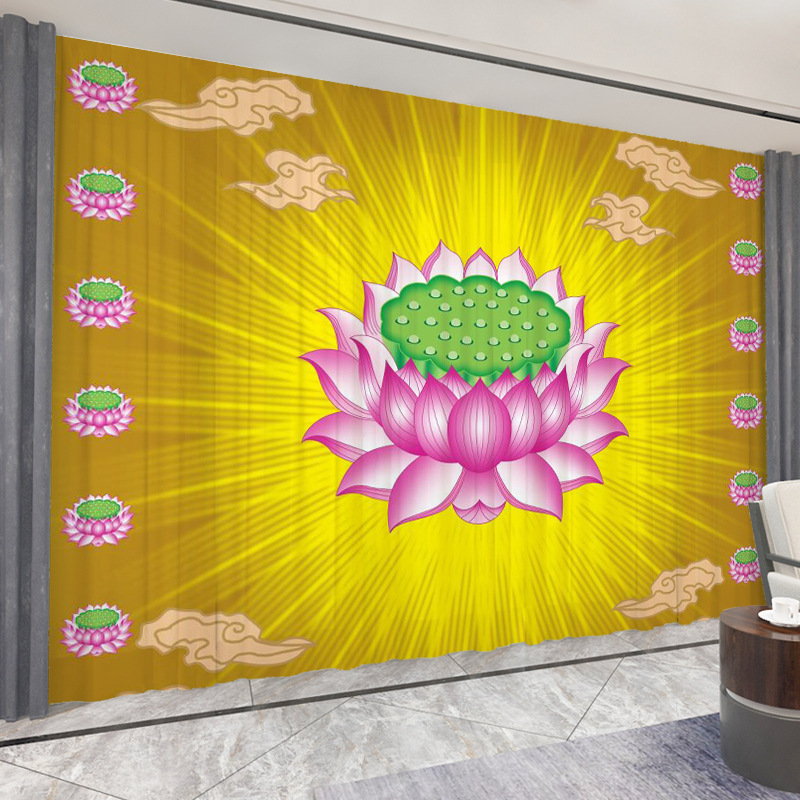 불교 선 커튼 중국 스타일 부처님 홀 차단 커튼 도교 풍경 차단 천 커튼 연꽃 티 룸 파티션 장식