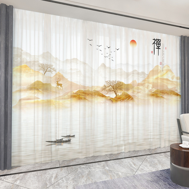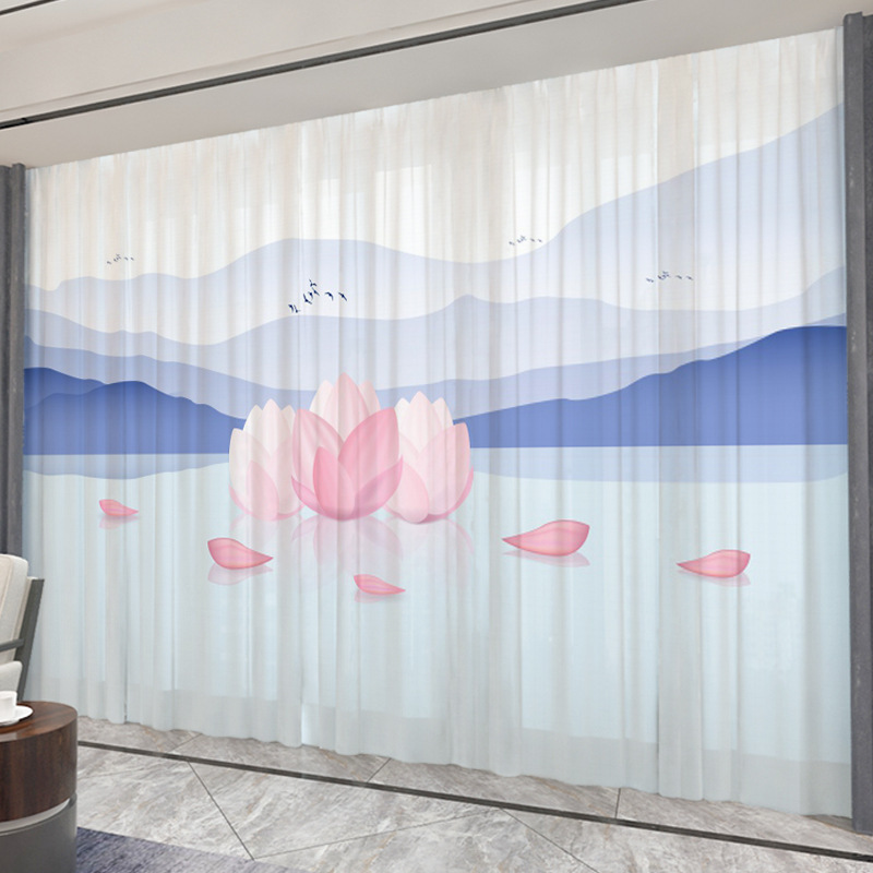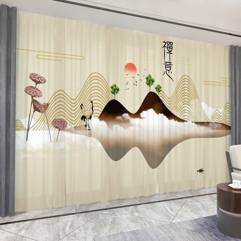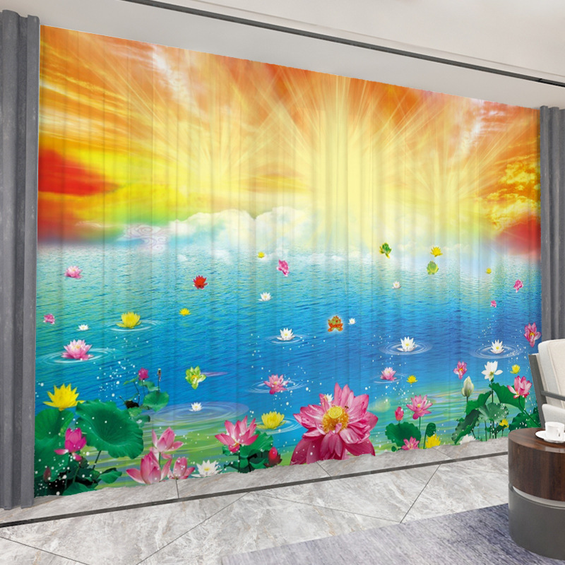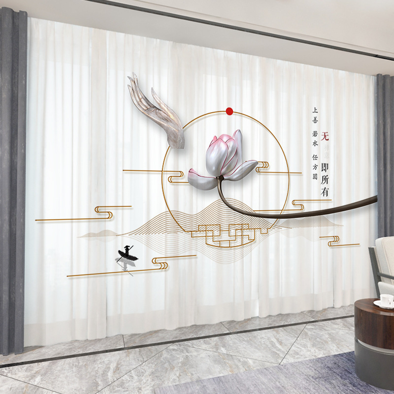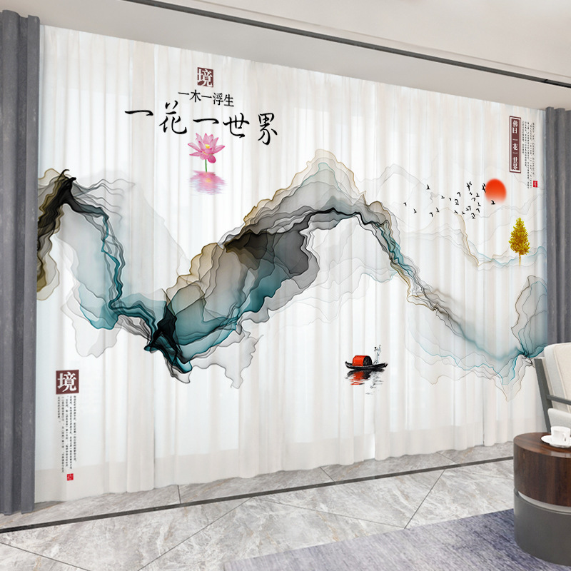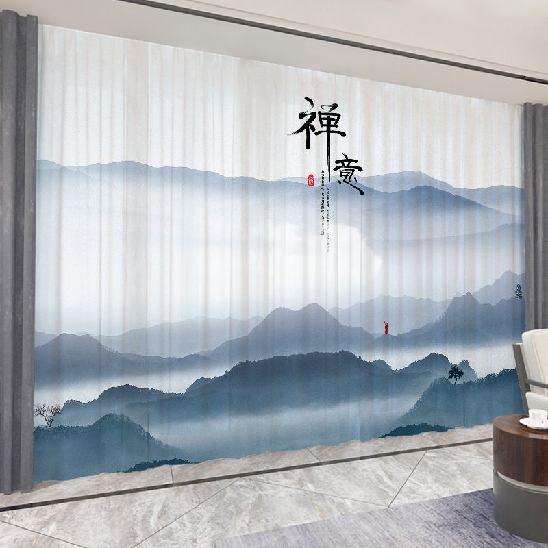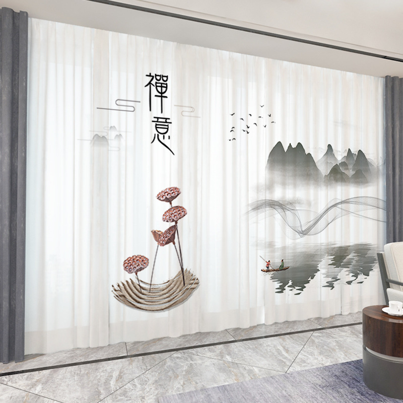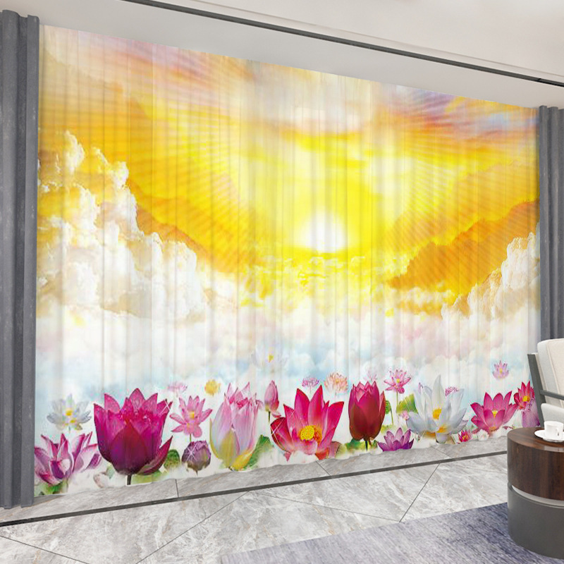 불교 선 커튼 중국 스타일 부처님 홀 차단 커튼 도교 풍경 차단 천 커튼 연꽃 티 룸 파티션 장식