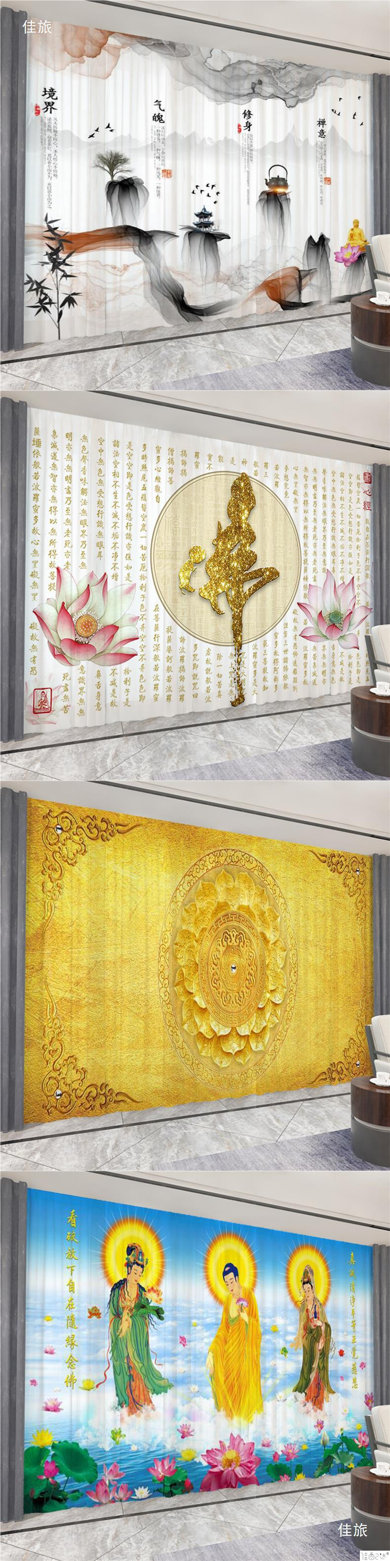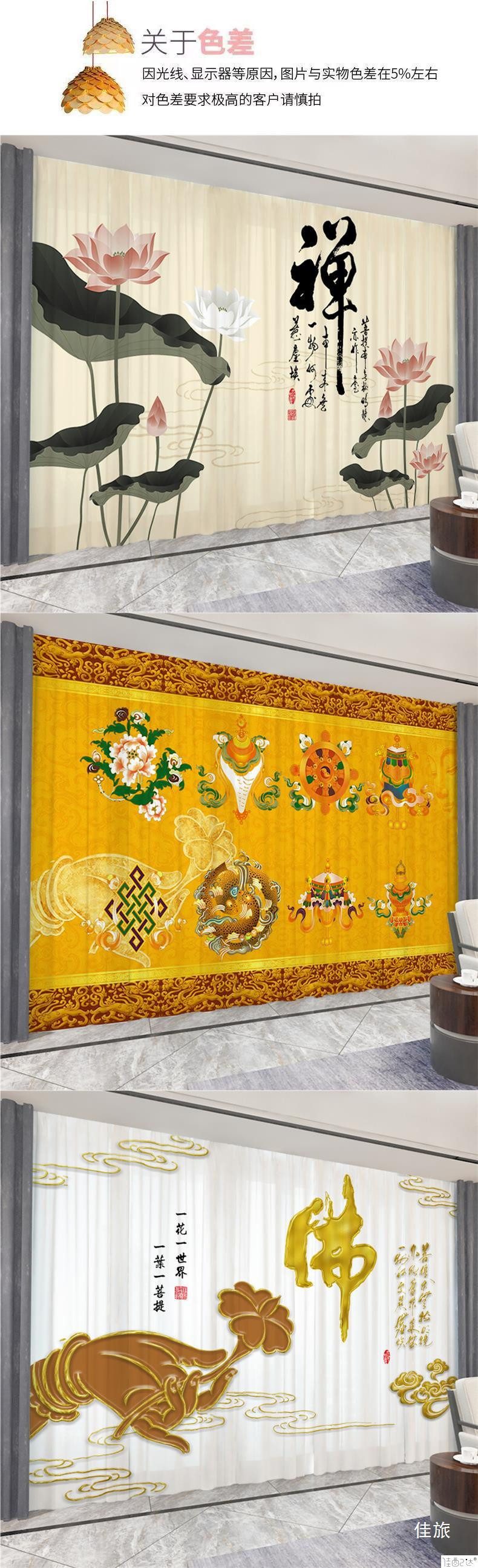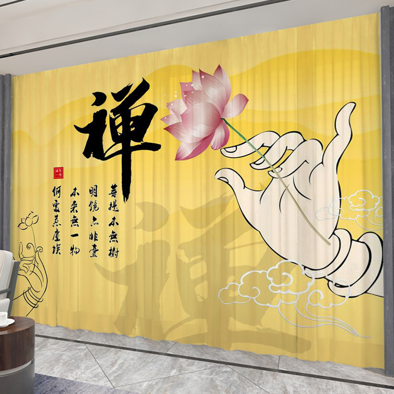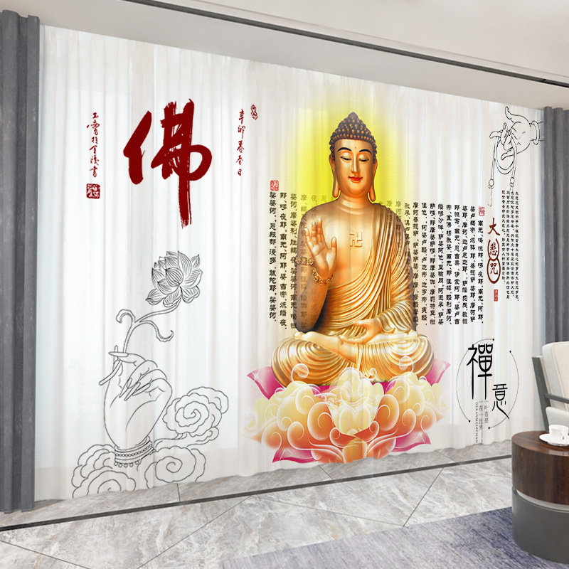 불교 선 커튼 중국 스타일 부처님 홀 차단 커튼 도교 풍경 차단 천 커튼 연꽃 티 룸 파티션 장식스토어 가기