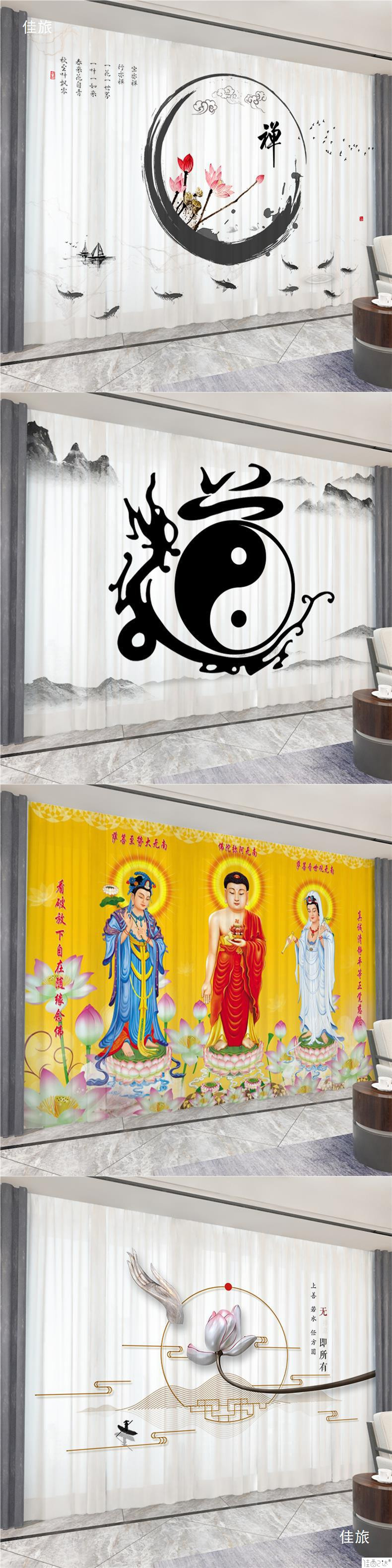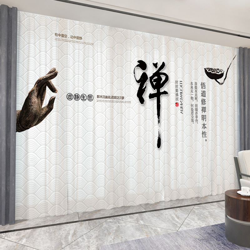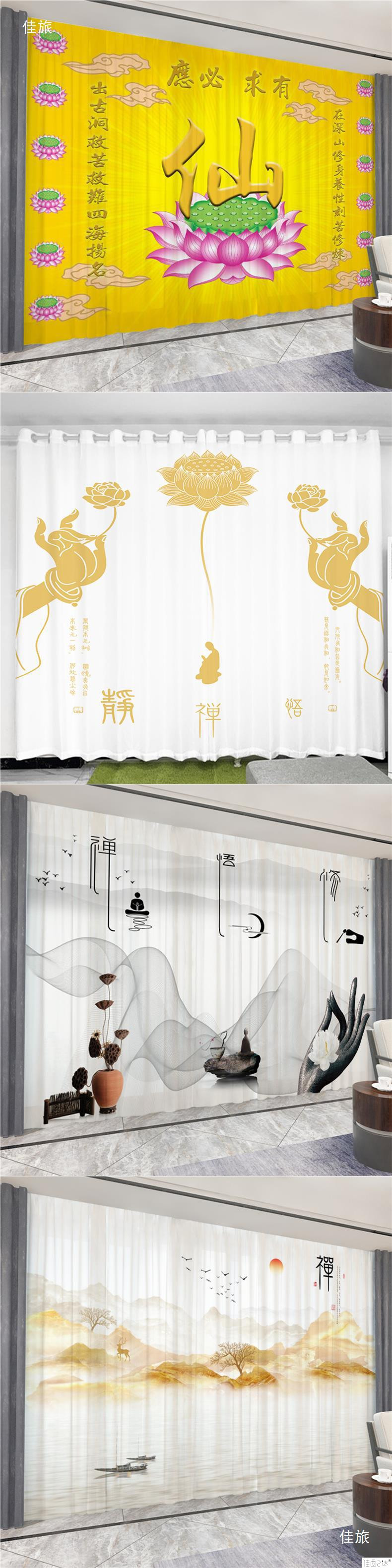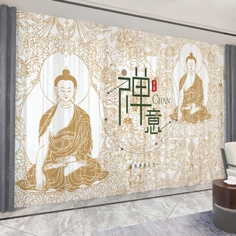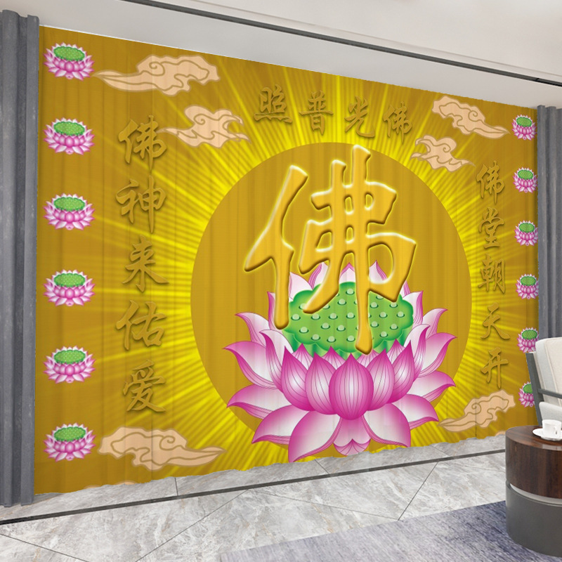 불교 선 커튼 중국 스타일 부처님 홀 차단 커튼 도교 풍경 차단 천 커튼 연꽃 티 룸 파티션 장식스토어 가기